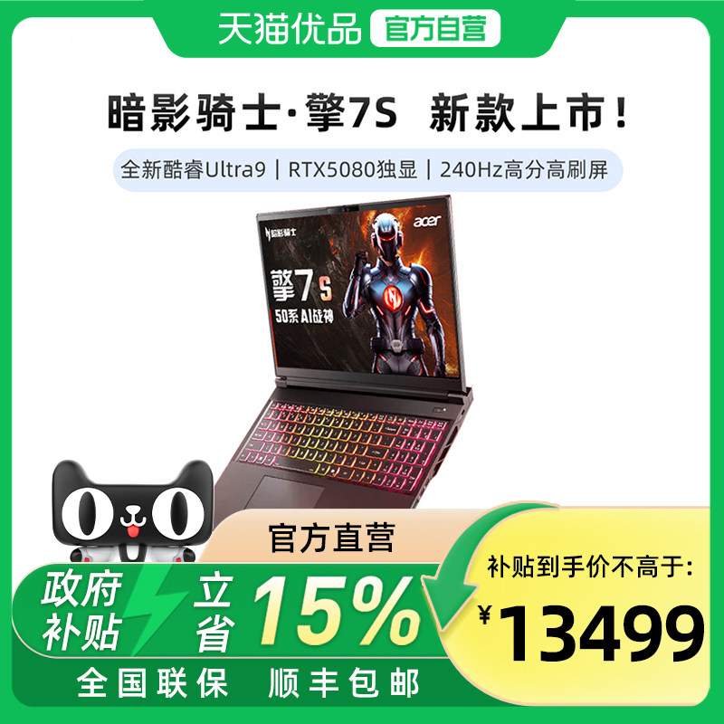 【国补电脑25款】宏碁暗影骑士·擎7S Pro 新RTX5080显卡游戏电竞笔记本电脑 大学生游戏本 黑悟空畅玩笔记本