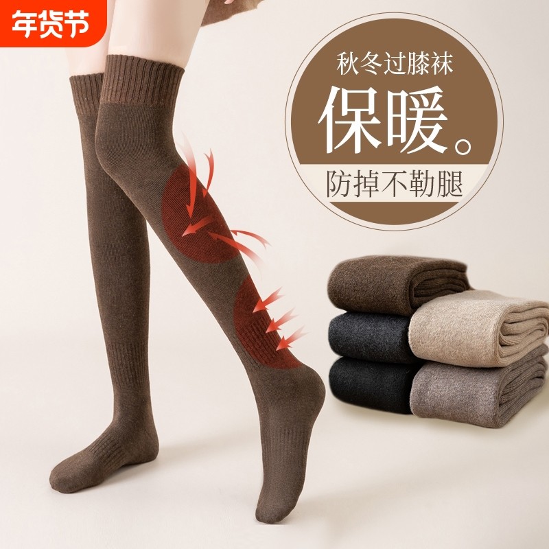 过膝袜子女秋冬羊毛长筒袜加厚保暖护膝大腿袜纯棉压力显瘦高筒袜