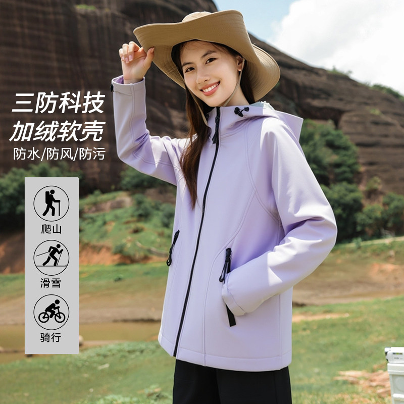 KHV真维斯三防软壳夹克外套女2025新款秋户外运动休闲登山服上衣