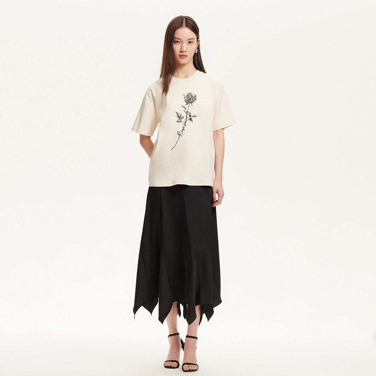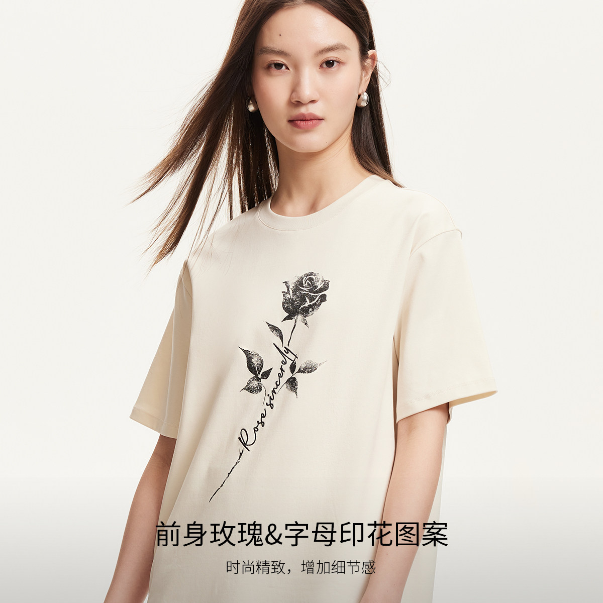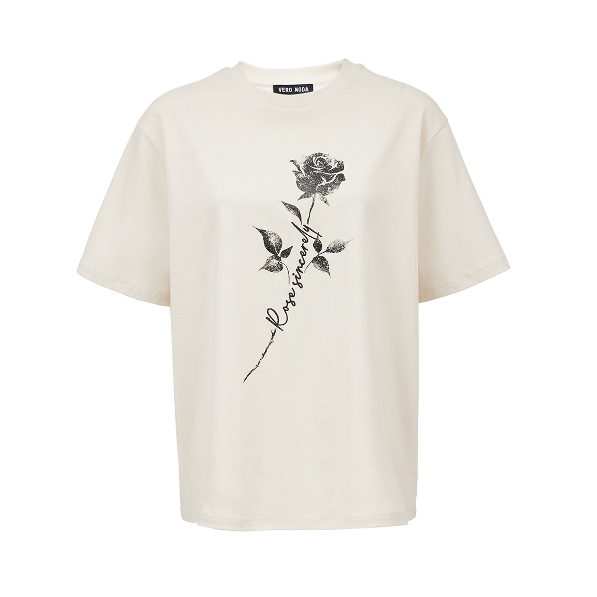 Vero Moda奥莱T恤女2025夏季新款商场同款玫瑰印花纯棉短袖上衣