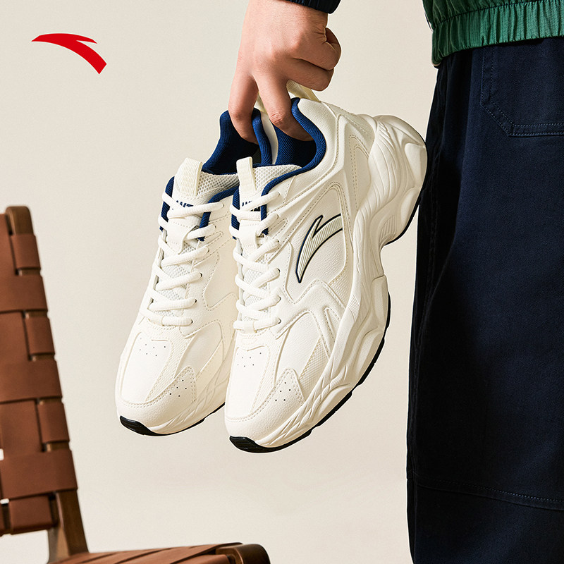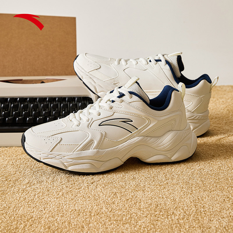鸿星尔克男鞋运动鞋桀骜皮面秋冬款休闲鞋青少年软底老爹鞋跑步鞋