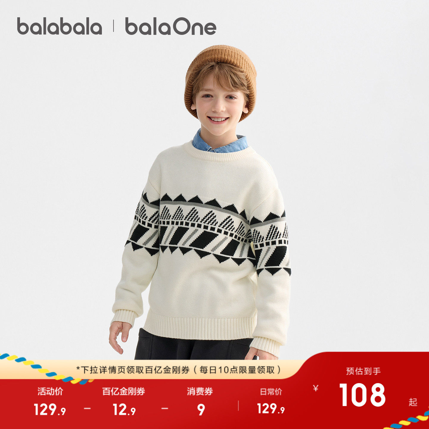 巴拉巴拉童装儿童毛衣男童女童2026冬季新款内搭宝宝针织衫亲子装