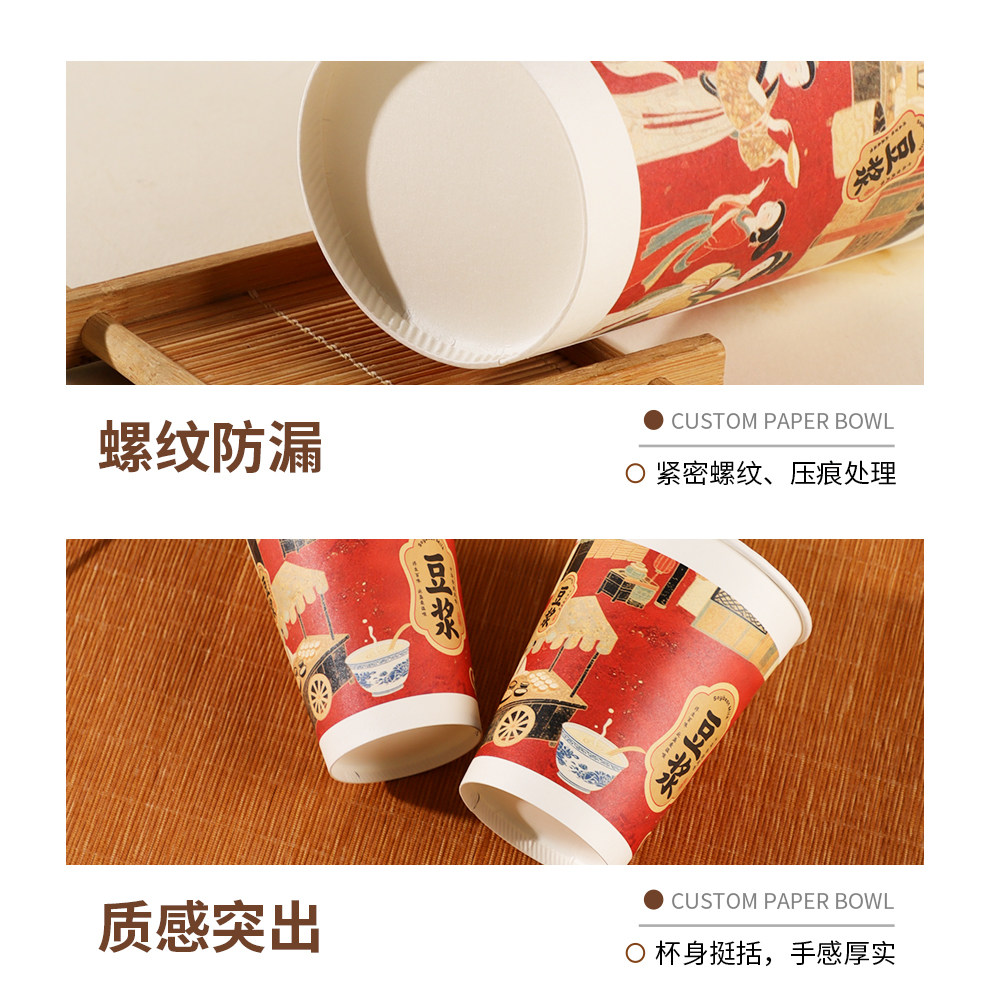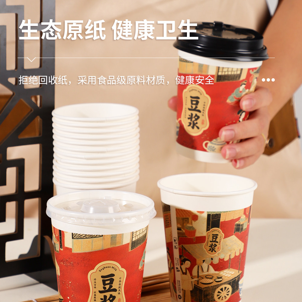 豆浆纸杯杯子一次性早餐店带盖专用加厚家用打包食品级便携防漏