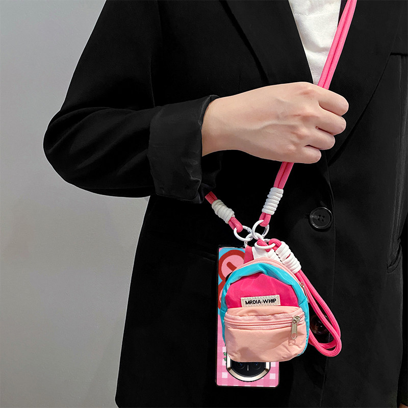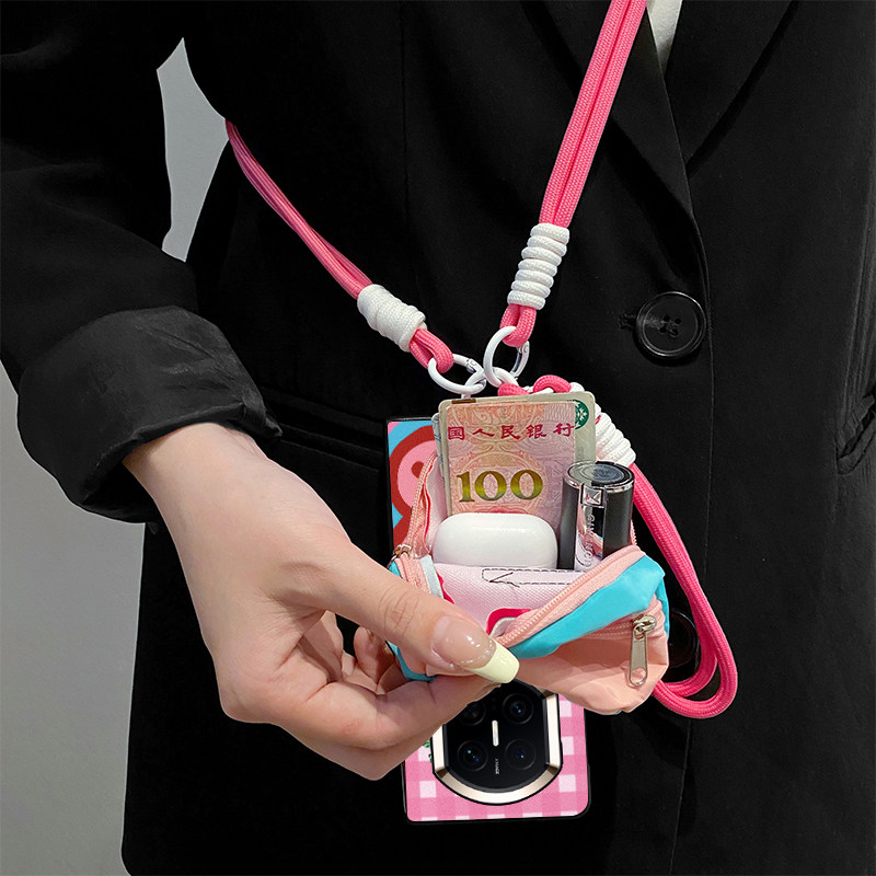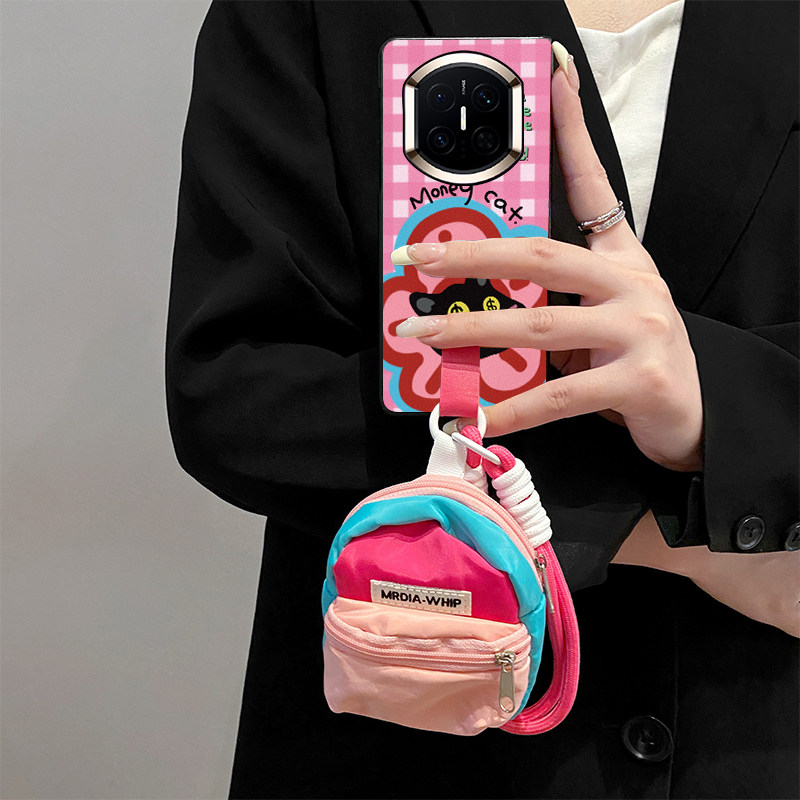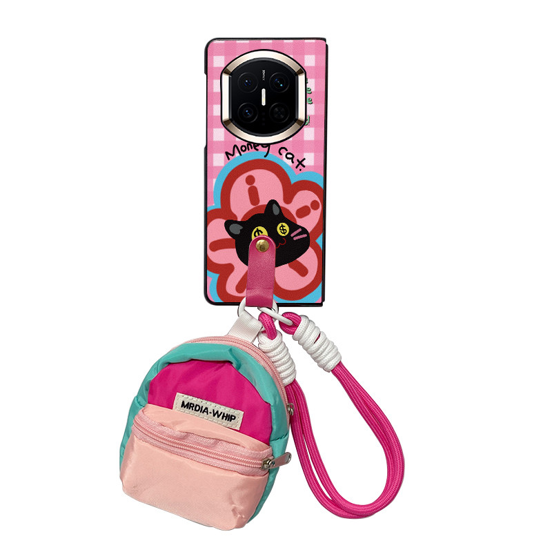 尾火虎适用华为matex7手机壳粉格纹招财猫折叠屏皮纹可爱ins日韩风少女挂绳matexts非凡大师版/x6/x5/x3/xs2