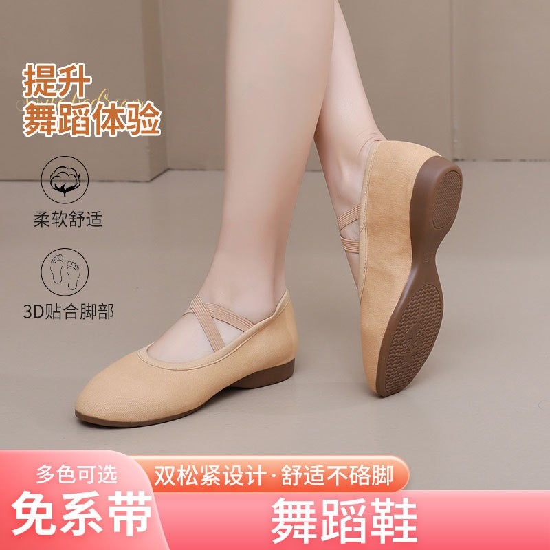 广场舞鞋女驼色低中跟牛筋底舞蹈鞋中老年女士跳舞鞋成人专业软底