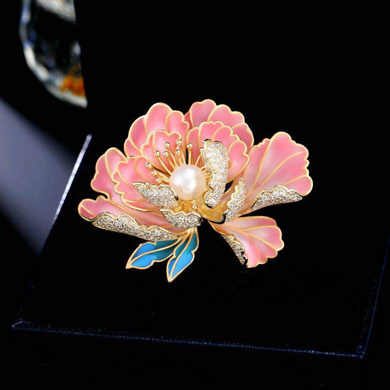 花开富贵淡水珍珠国风牡丹花胸针优雅气质中国风大衣汉服旗袍配饰
