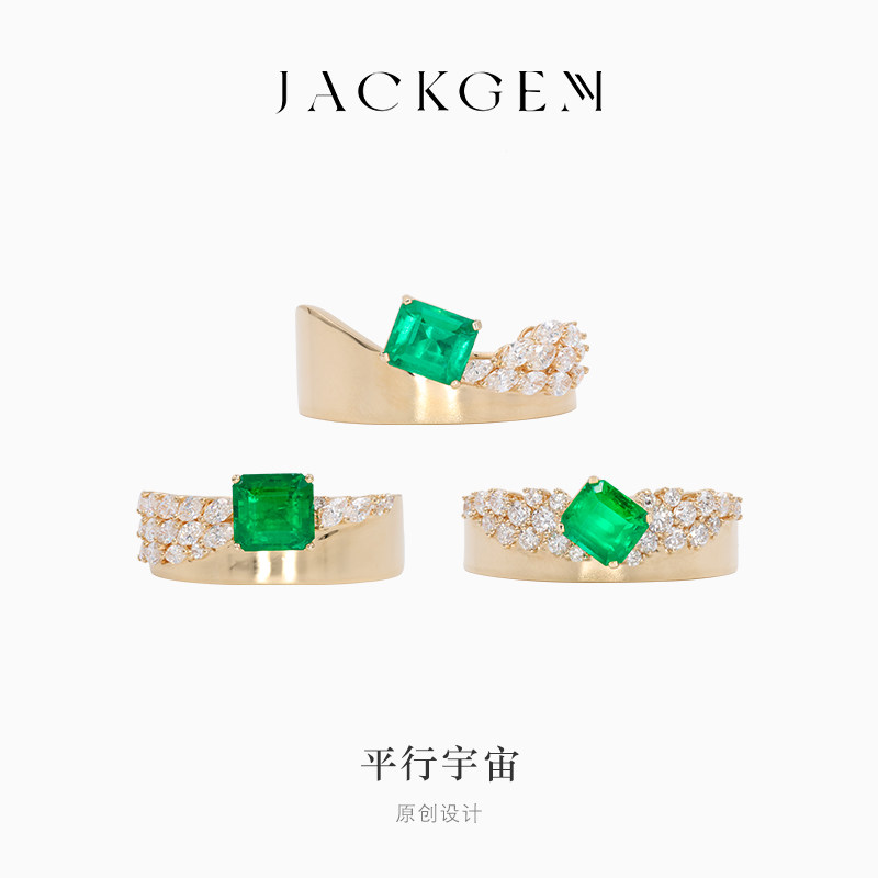 【原创平行宇宙】祖母绿戒指18k金钻石戒指彩宝戒指绿钻戒指金O3