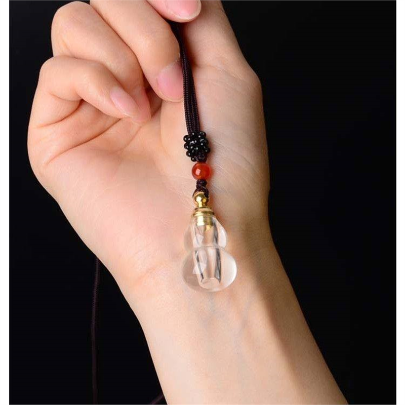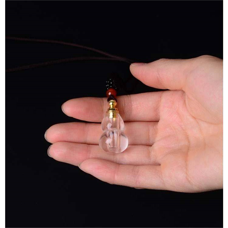 纯天然白水晶葫芦精油瓶 可放胎毛朱砂空瓶吊坠 和田玉福禄进宝饰