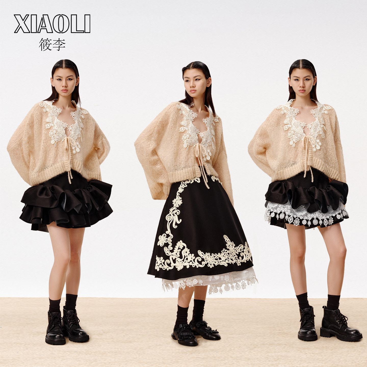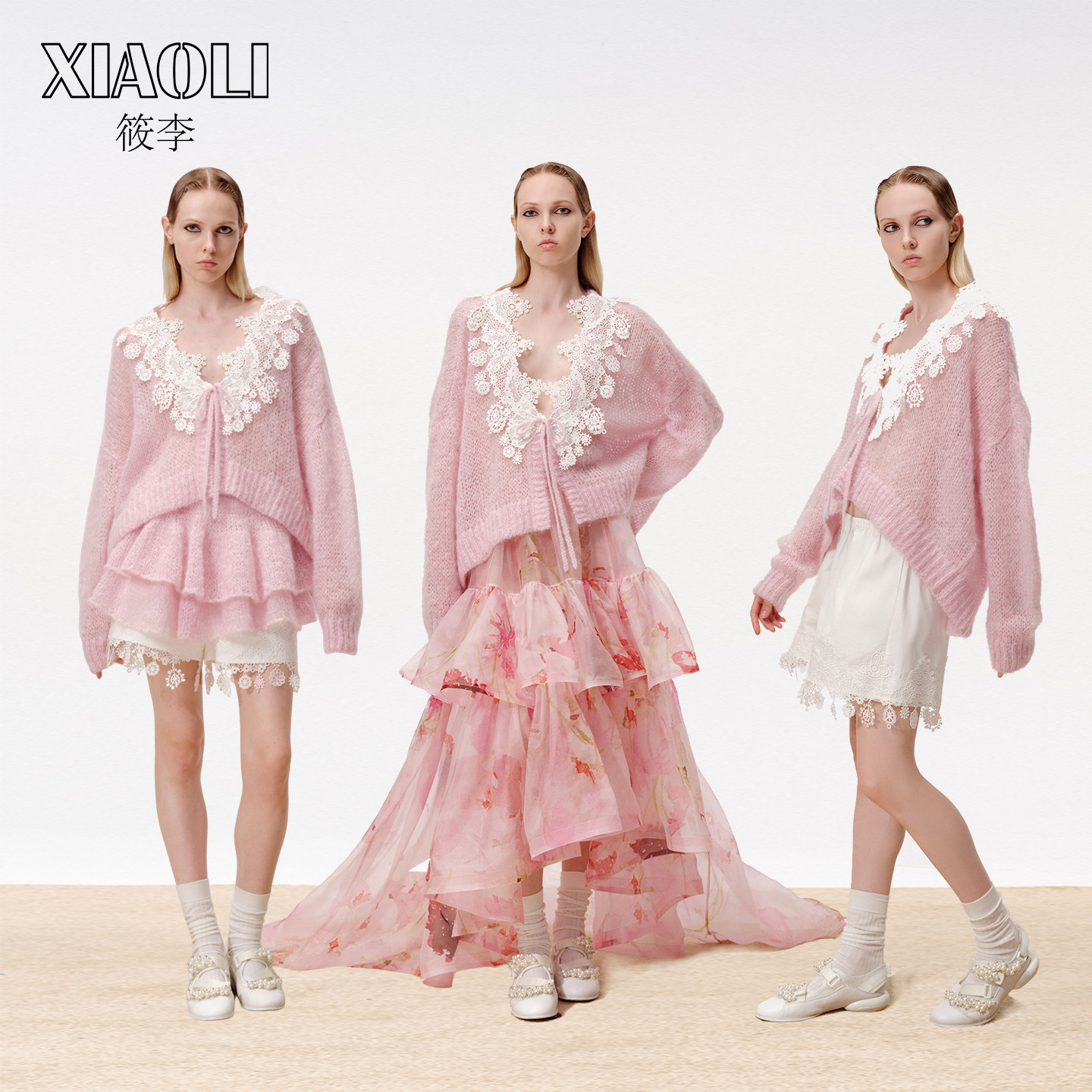 代王推荐 XIAOLI筱李灯上华尔兹马海毛针织系绳蕾丝衫25秋新品