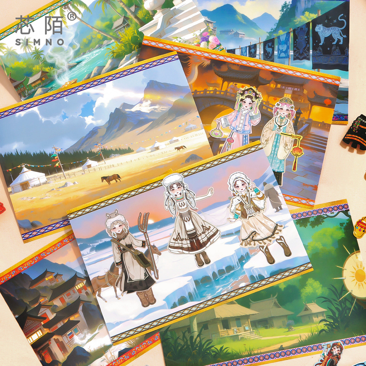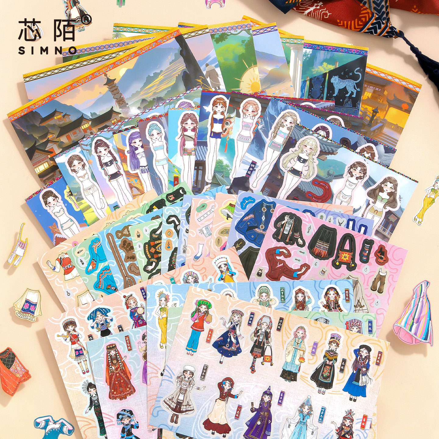 芯陌芯光少女民族换装贴纸本新款创意中国风女孩服装设计diy换装贴画儿童益智玩具贴纸安静书手帐diy装饰素材