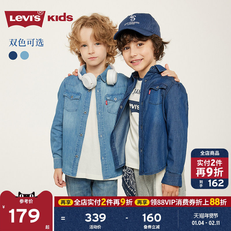 Levis李维斯儿童牛仔衬衫秋装新款经典水洗男童女童衬衣童装外套