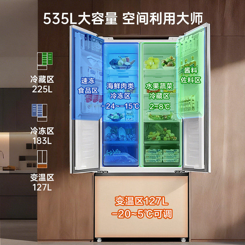 政府补贴海尔出品统帅538L对开双开门无霜一级变频大容量家用冰箱