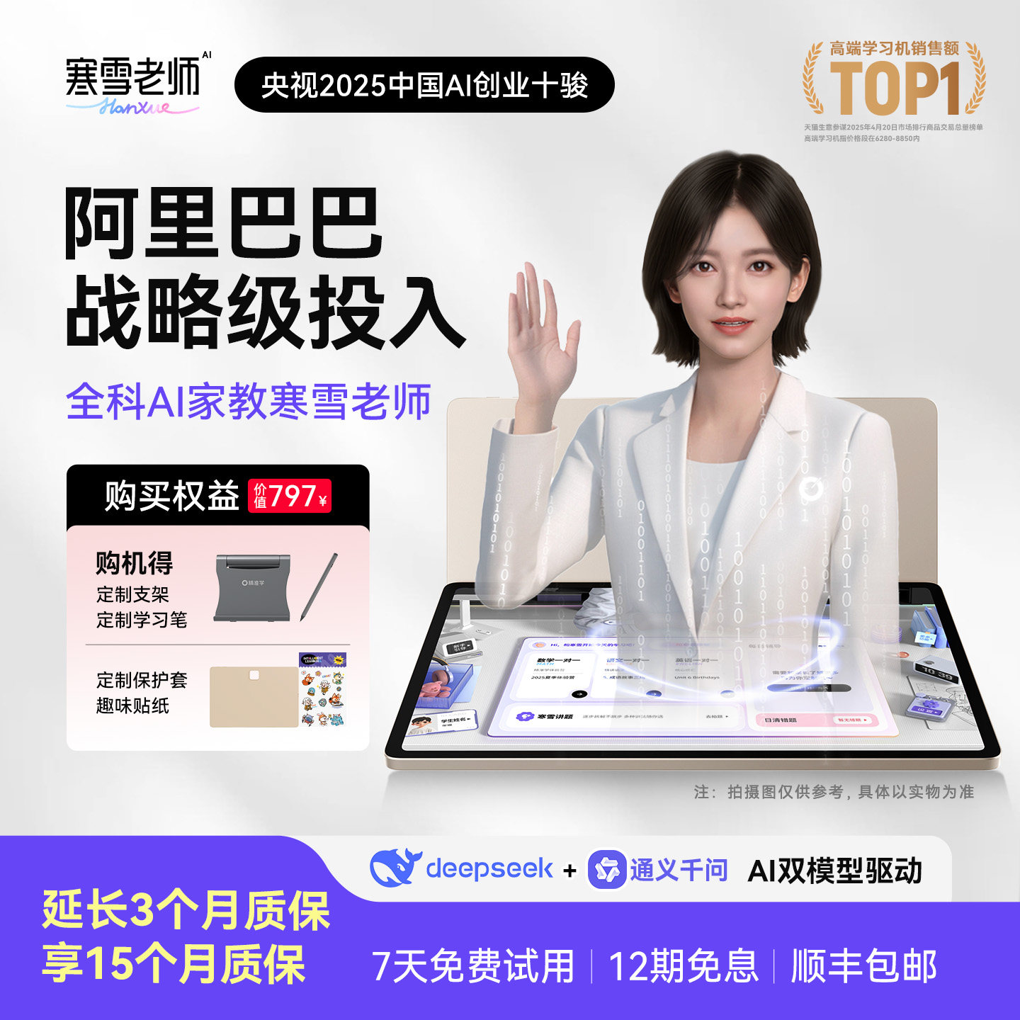 【延保3个月】智能精准学超拟人一对一AI家教寒雪老师大屏护眼小学初中高中辅学机256GAI智能学习机