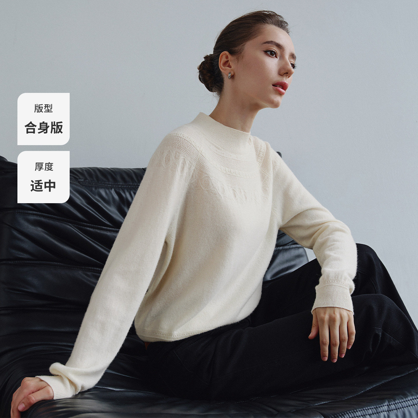 鄂尓半高2025秋冬新款安迪绒毛衣半高领套头衫洋气百搭款