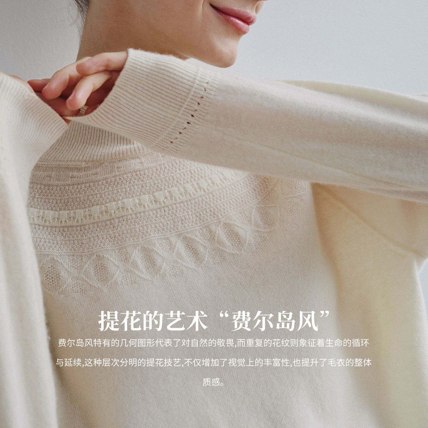 [羊毛]Navigare意大利小帆船休闲费尔岛毛衣女新款白色打底针织衫