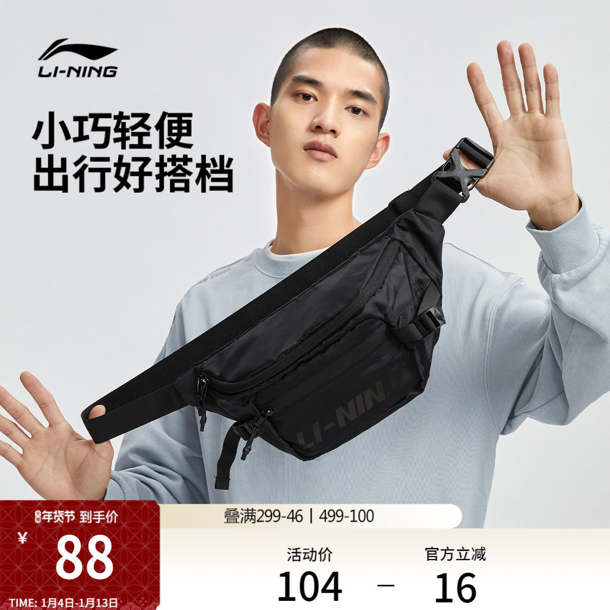 李宁腰包斜挎包男士官方大学生单肩包户外旅行多功能轻便运动背包