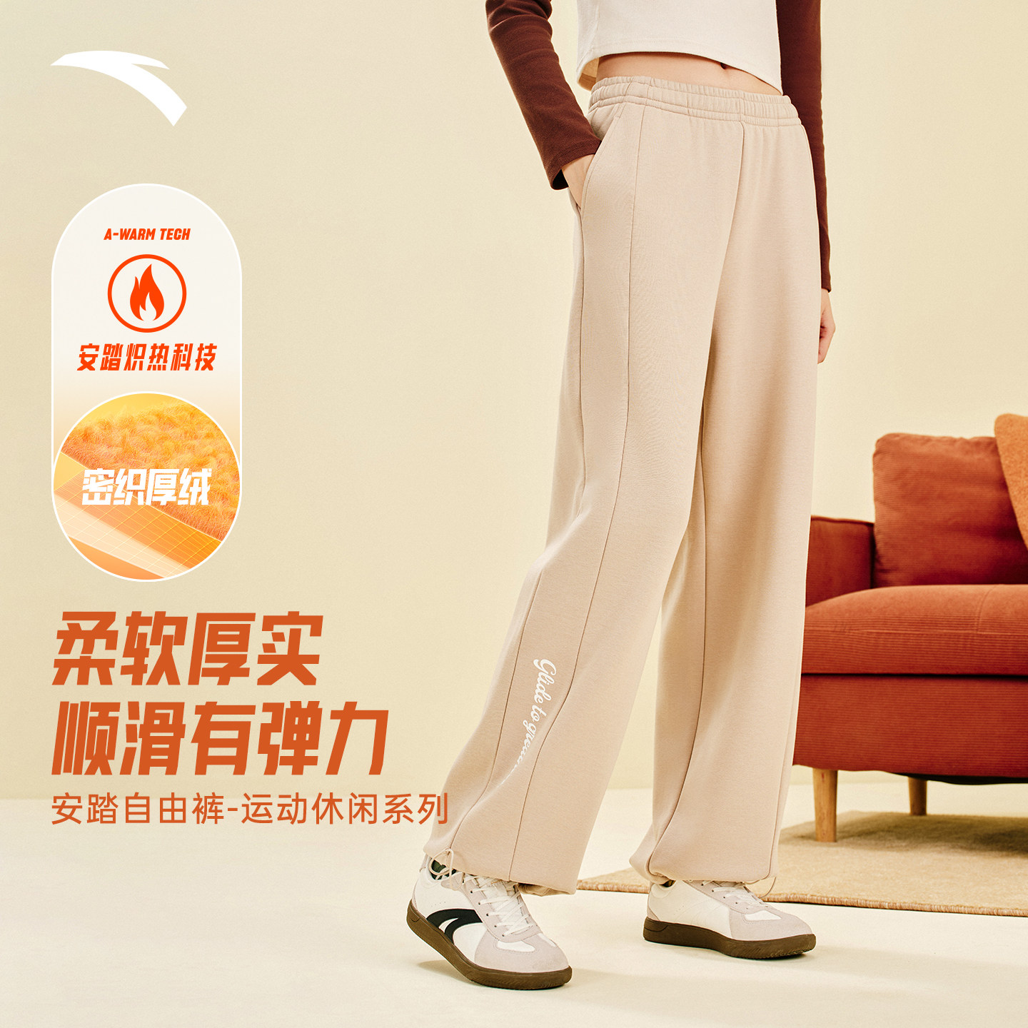 安踏自由裤丨直筒裤女裤冬季新款休闲百搭加绒卫裤长裤162548303N