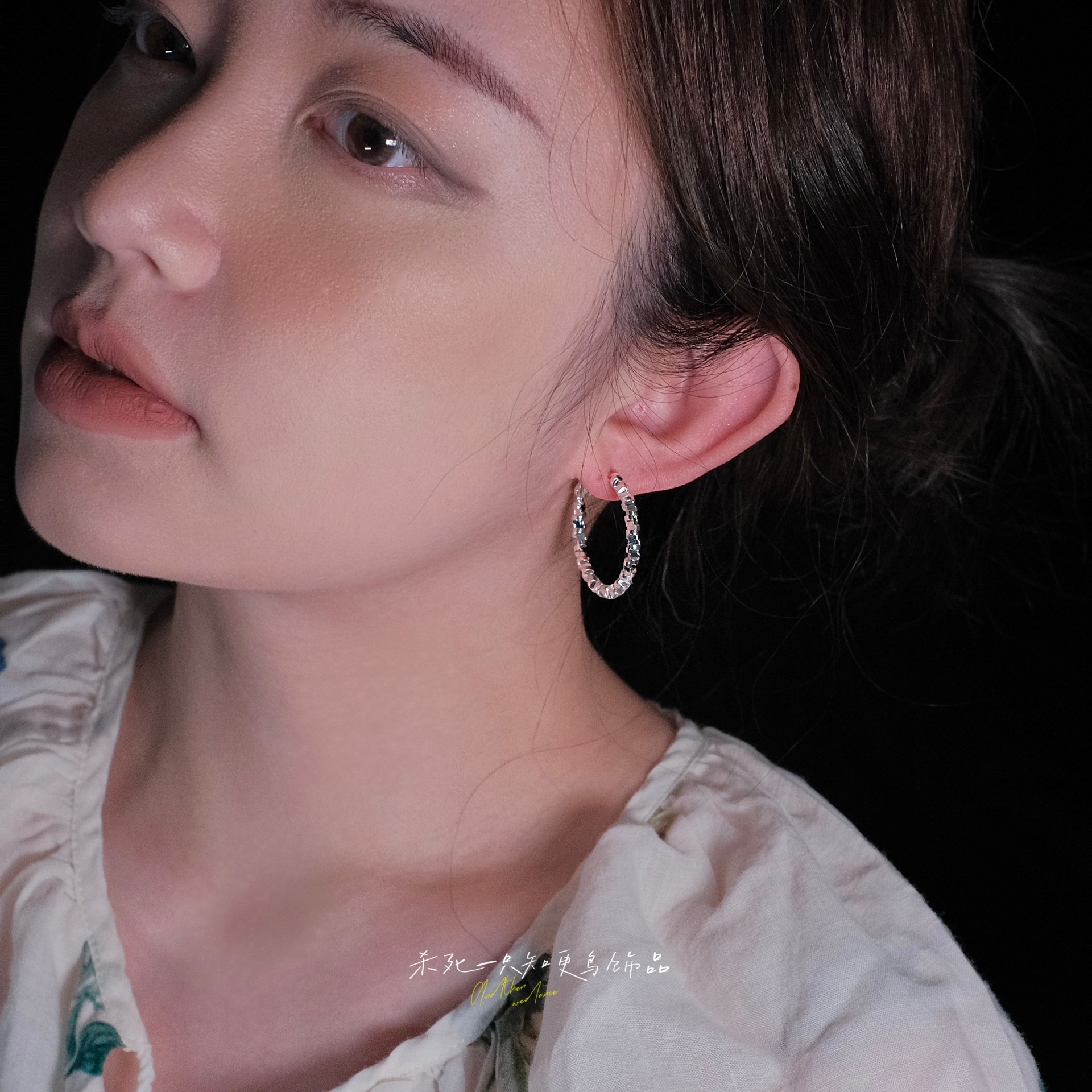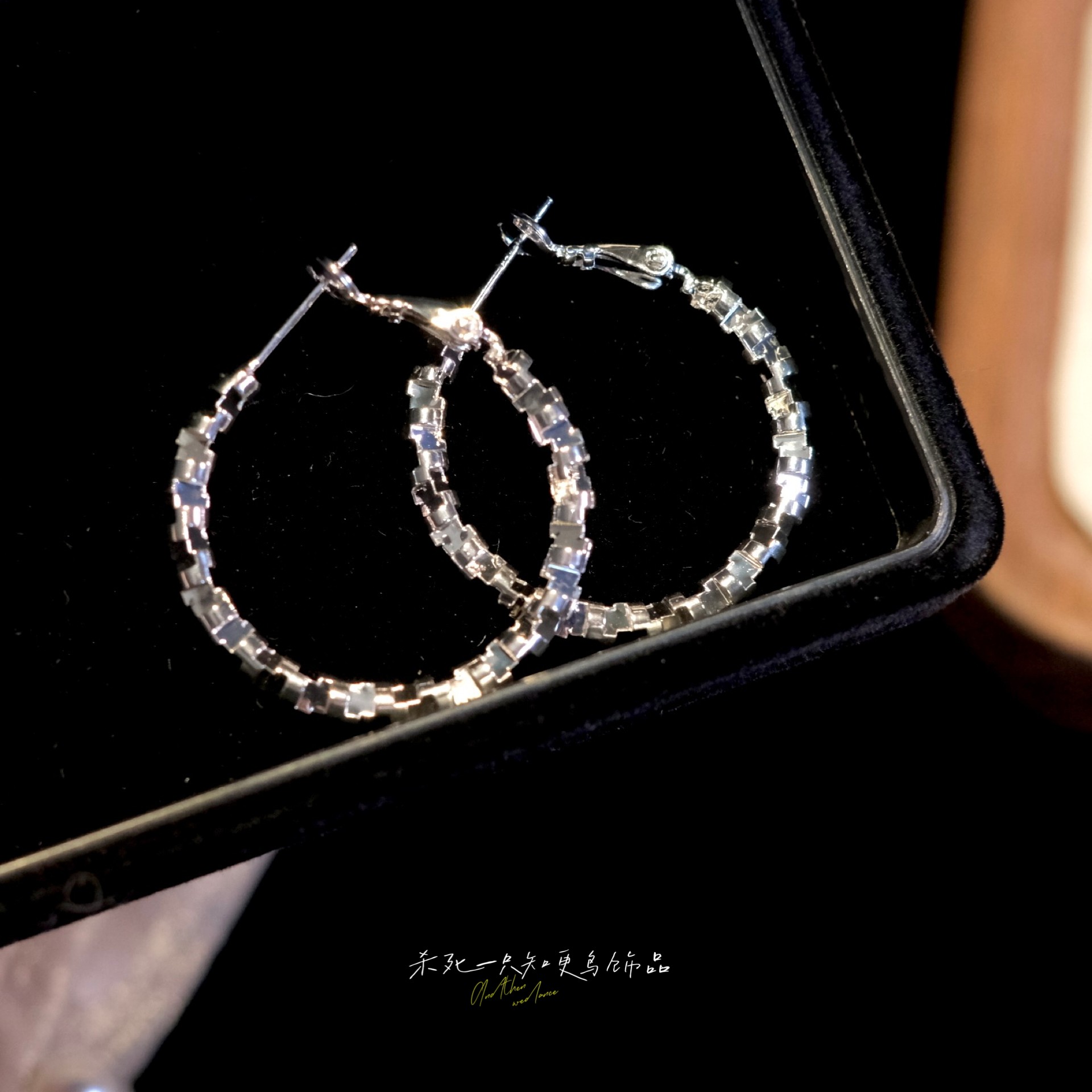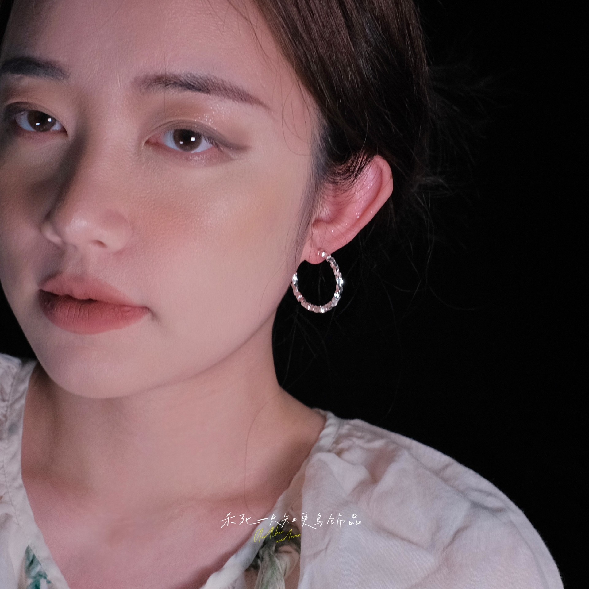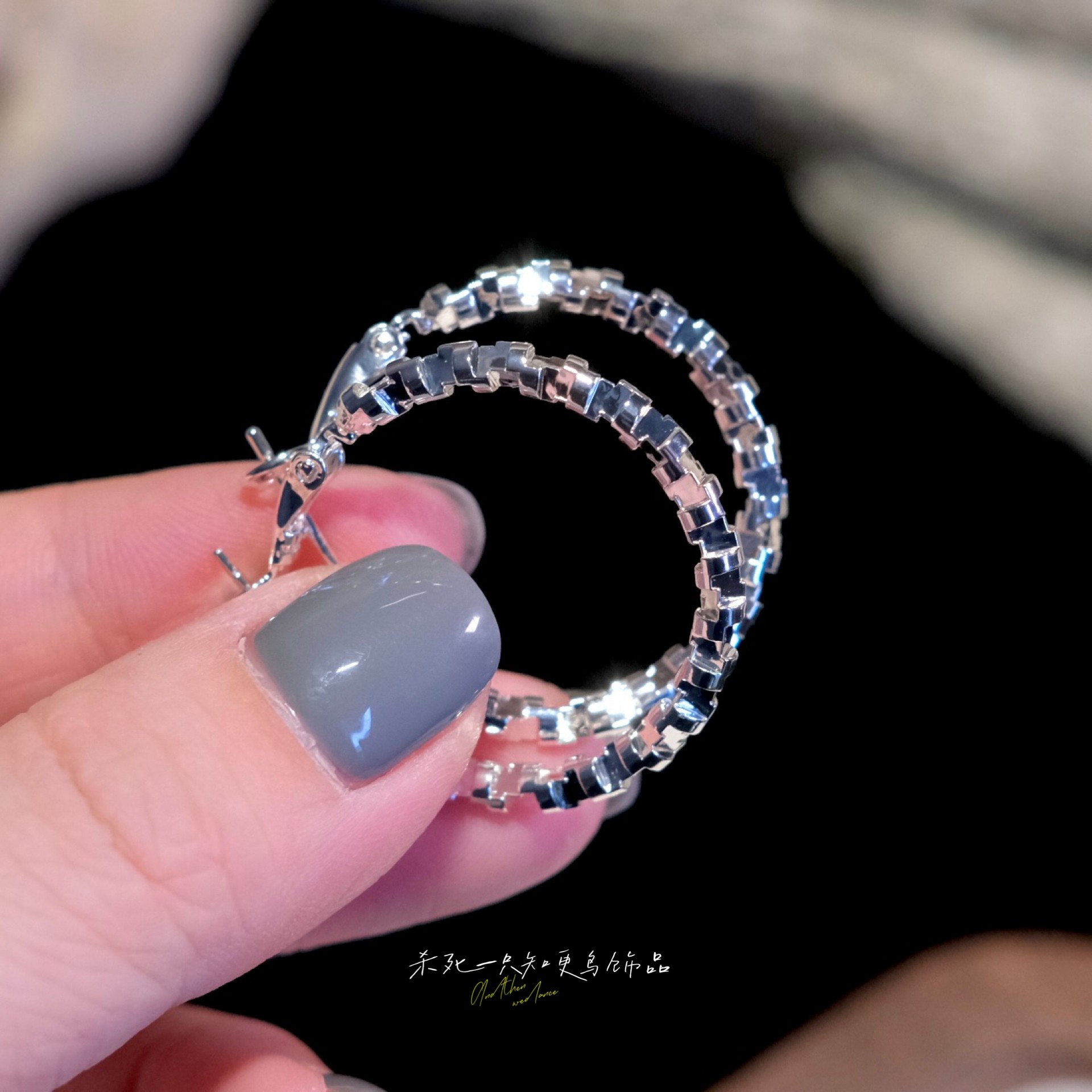 《波光粼粼》简约百搭高级感爆闪碎银子银色几何圈圈耳环耳夹耳饰