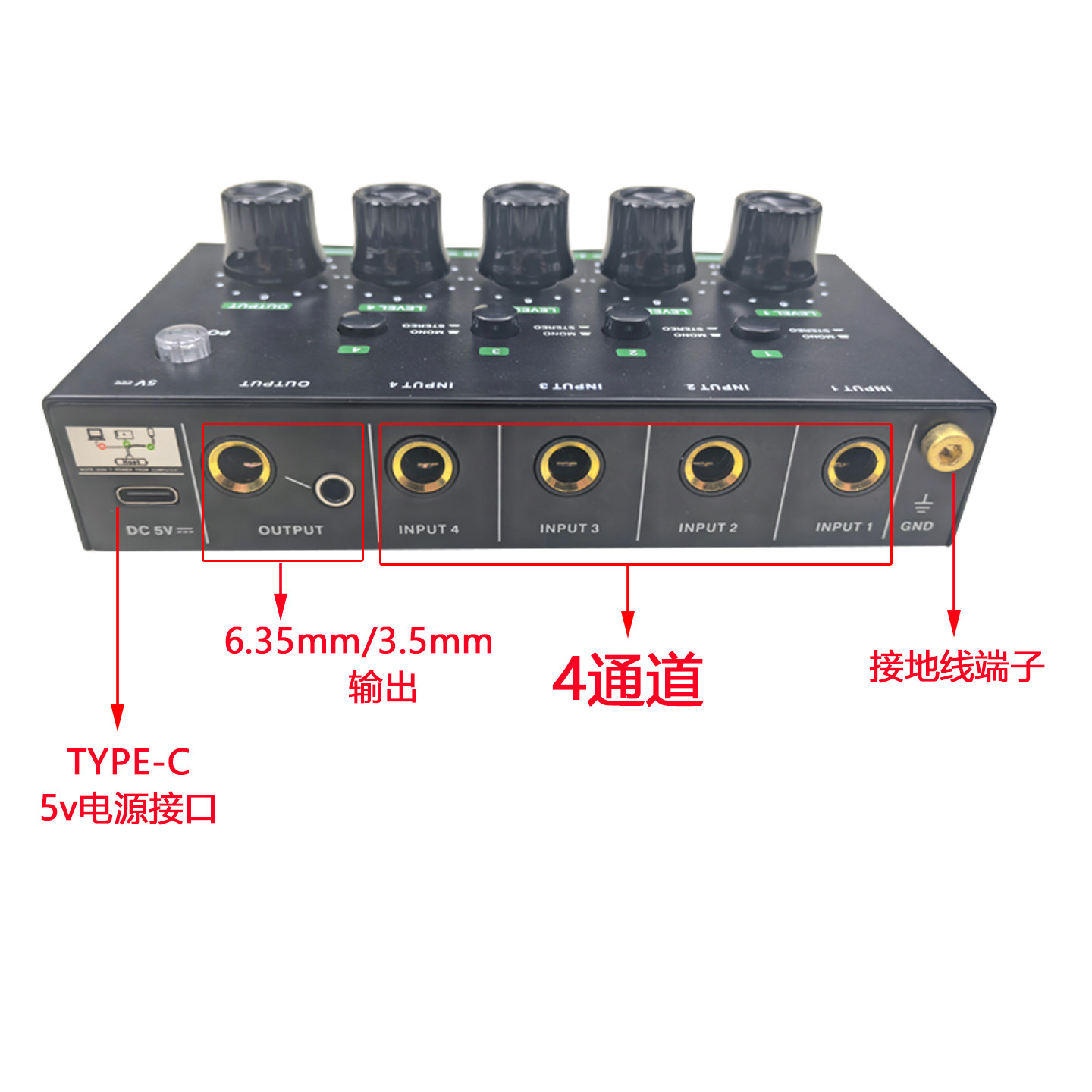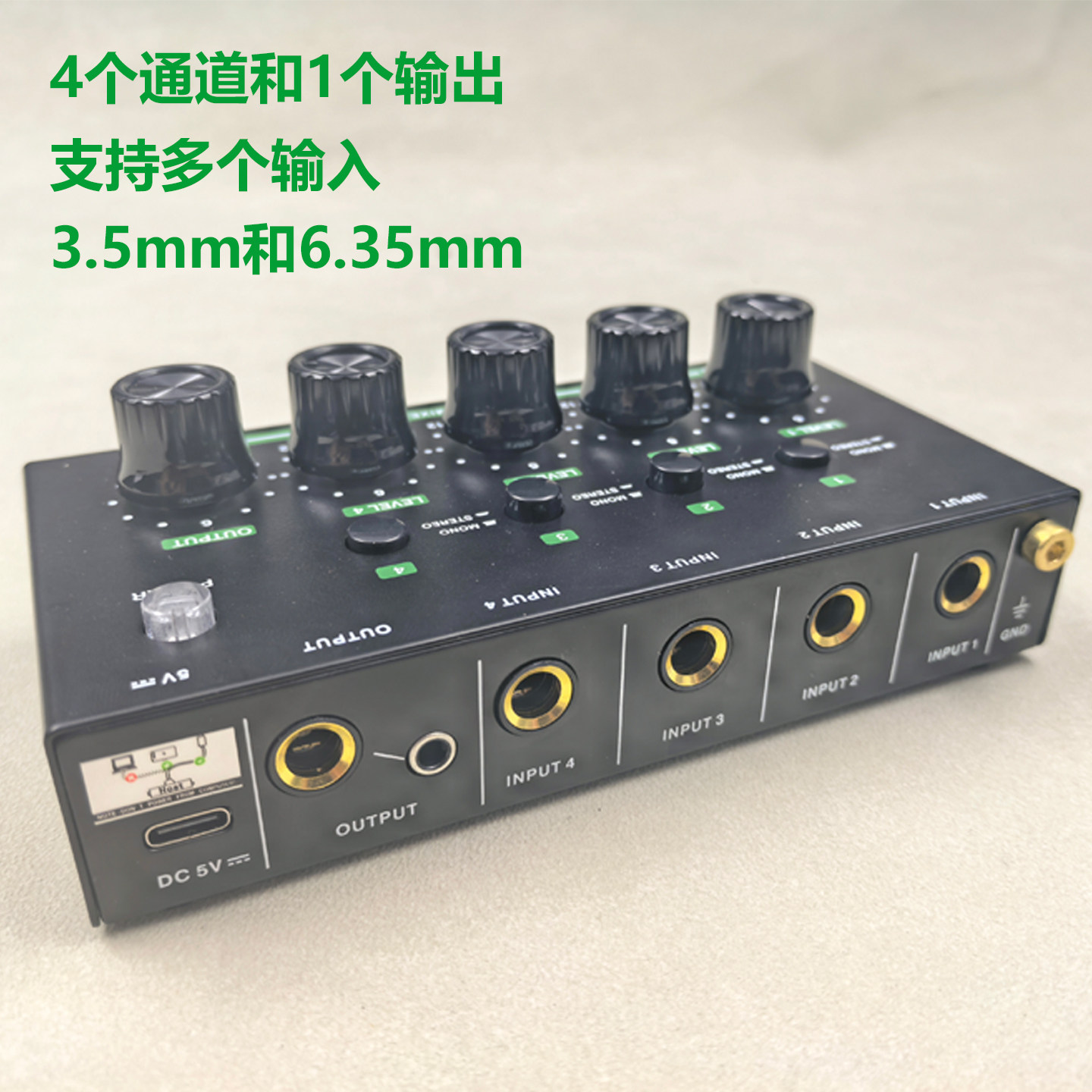 四路话筒混音器乐器声卡音频分配器多路扩展单声道换立体声4进2出