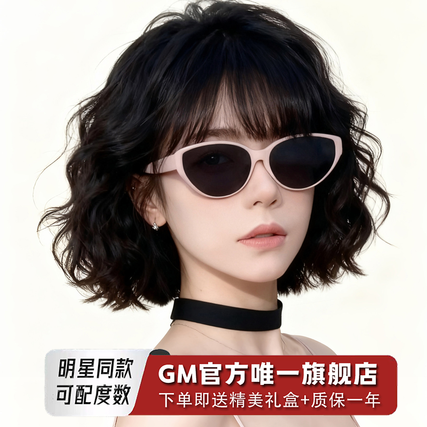GM墨镜太阳眼镜女明星同款粉色猫眼高级感防紫外线近视带度数pink