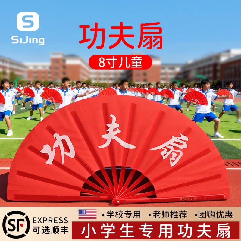 功夫扇红色小学生儿童太极扇中国响扇武术跳舞表演雪龙吟舞蹈双面