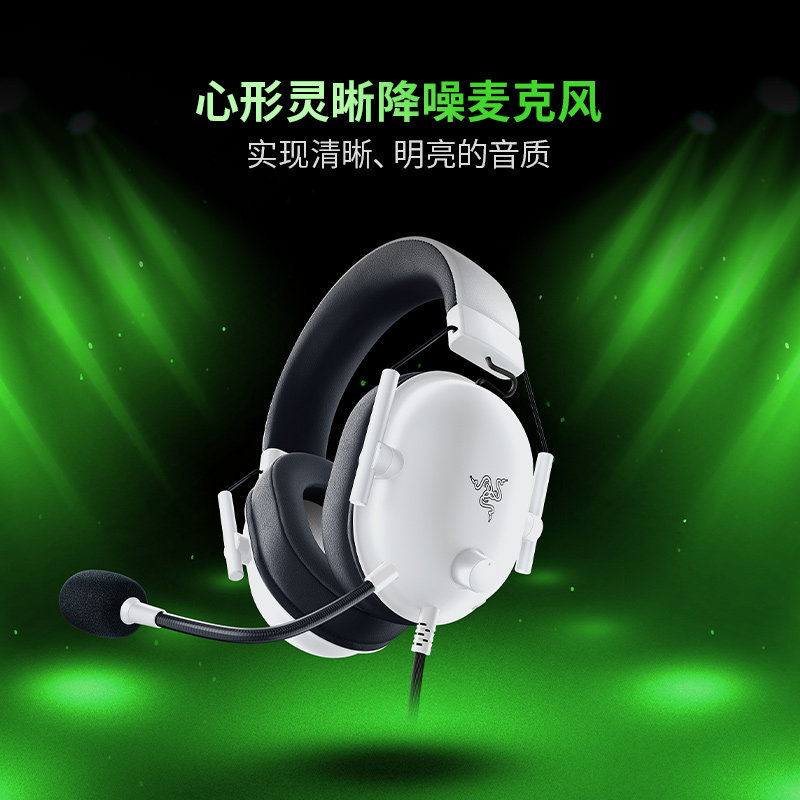 Razer雷蛇旋风黑鲨V2 X白色粉晶头戴式7.1环绕电竞游戏CSGO耳机麦