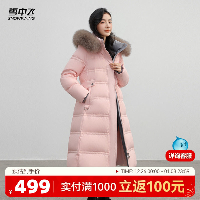 雪中飞2025冬新款女士长款狐狸毛领羽绒服加厚甜美收腰修身气质