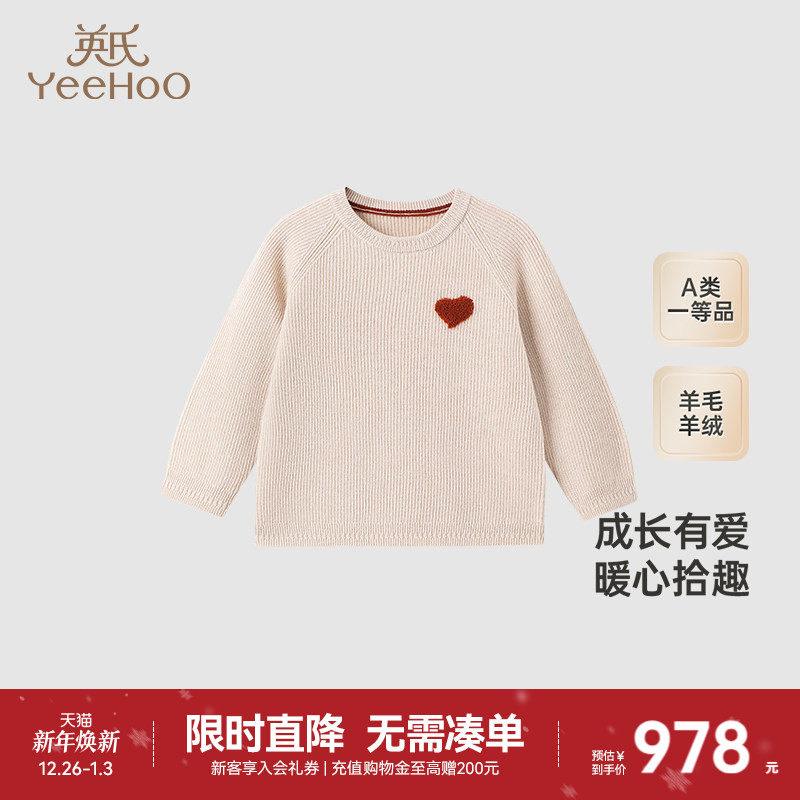 【高定系列】英氏儿童高定羊绒衫秋冬男童百搭针织衫女童羊毛上衣