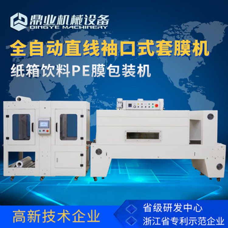 鼎业DQX6040S纸箱全自动袖口式直线输送带套膜机PE膜热收缩包装机