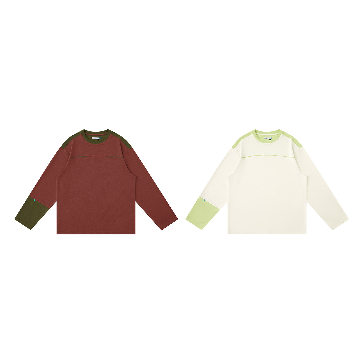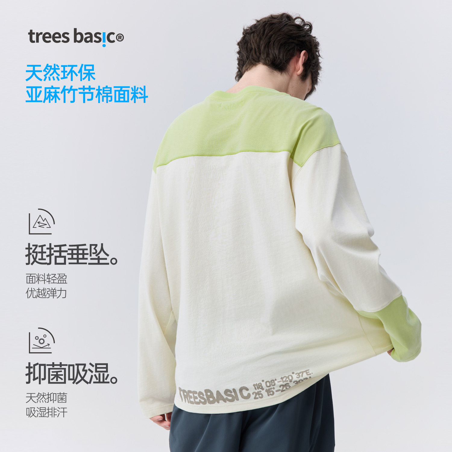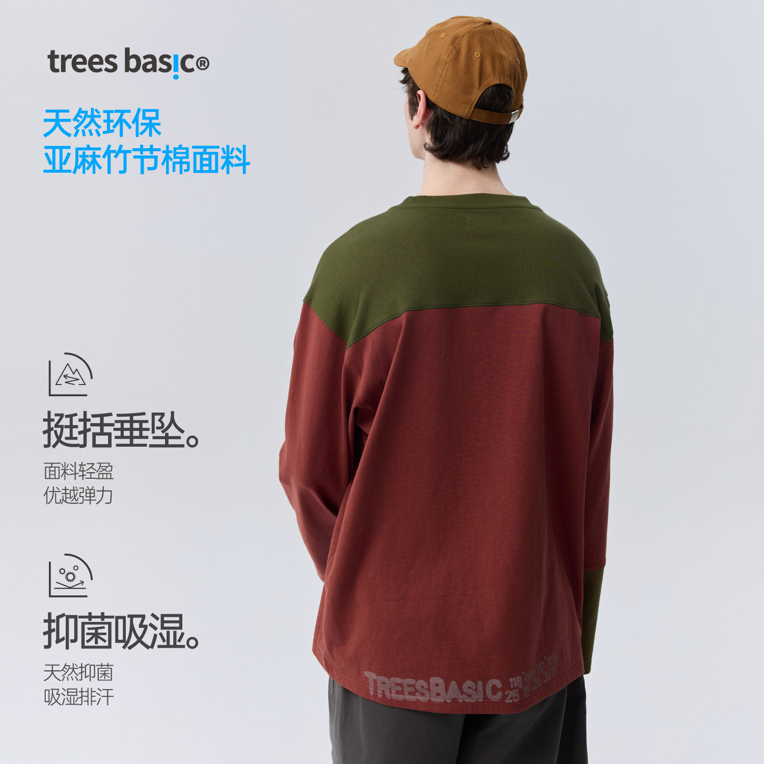 WARMTREESTreesBasic天然环保亚麻竹节棉拼色长袖T恤