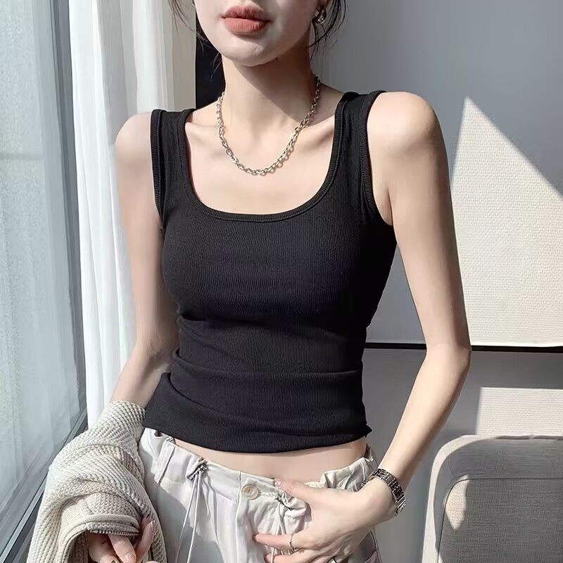 半练纽扣带胸垫夏季背心白色吊带女外穿内搭打底上衣免穿内衣