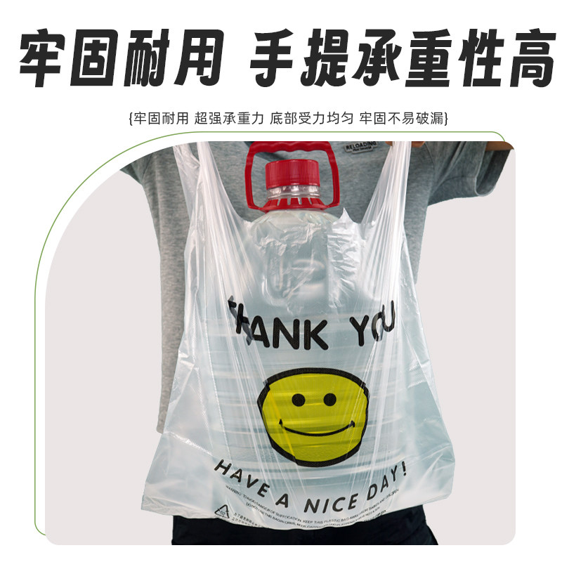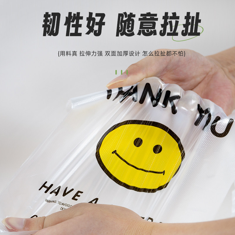 笑脸加厚透明塑料袋外卖垃圾袋商用打包袋购物袋方便手提袋子食品