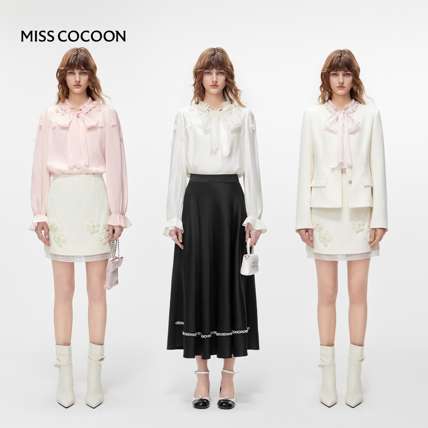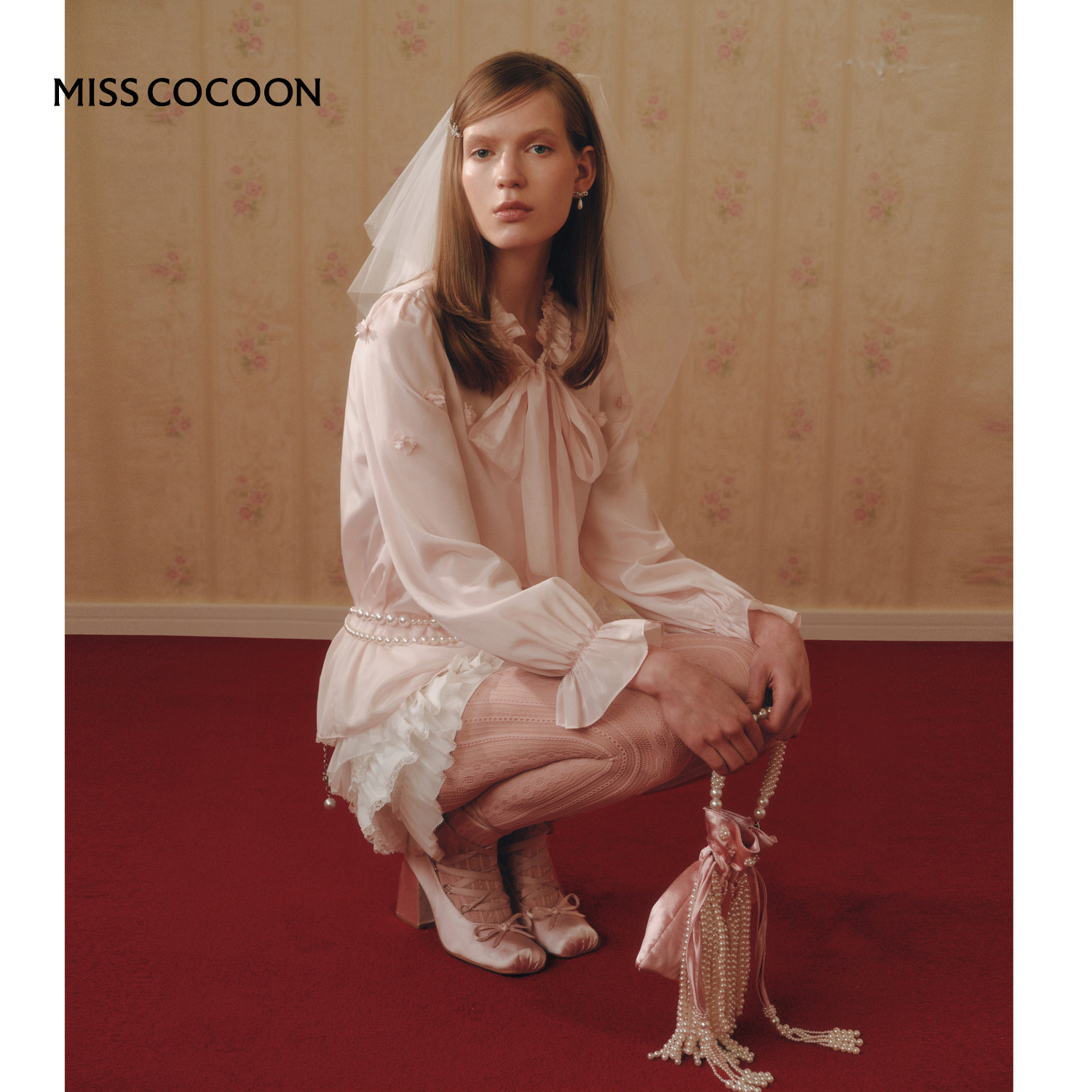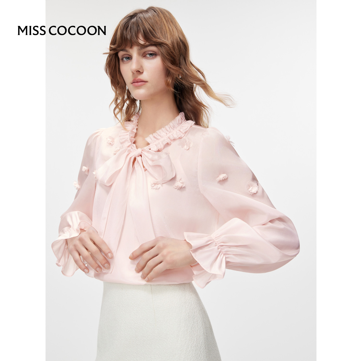 MISSCOCOON可可尼宽松衬衫女2026春季新款粉色打底蝴蝶结雪纺衫