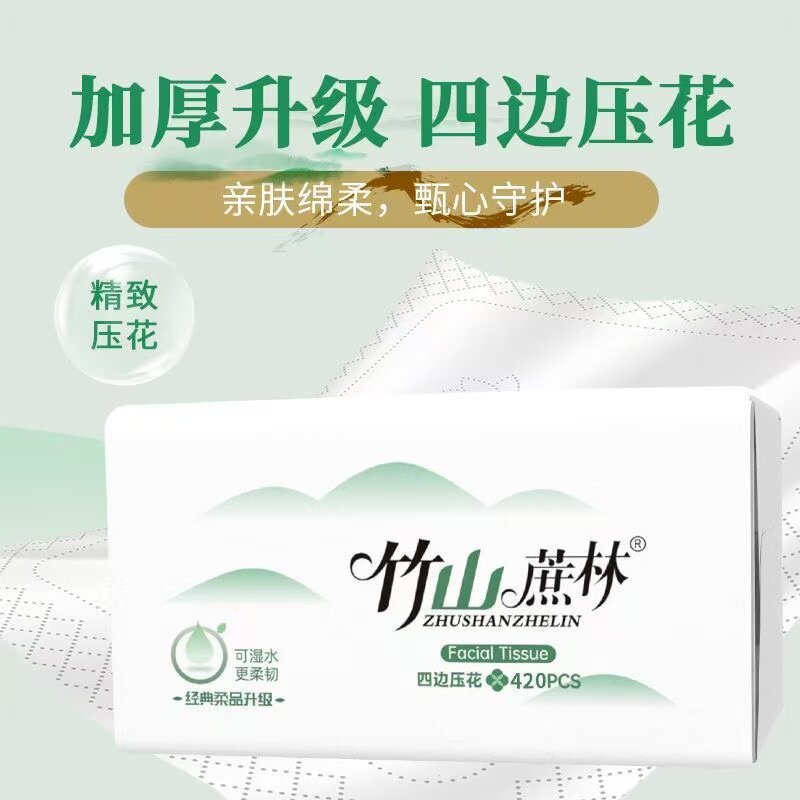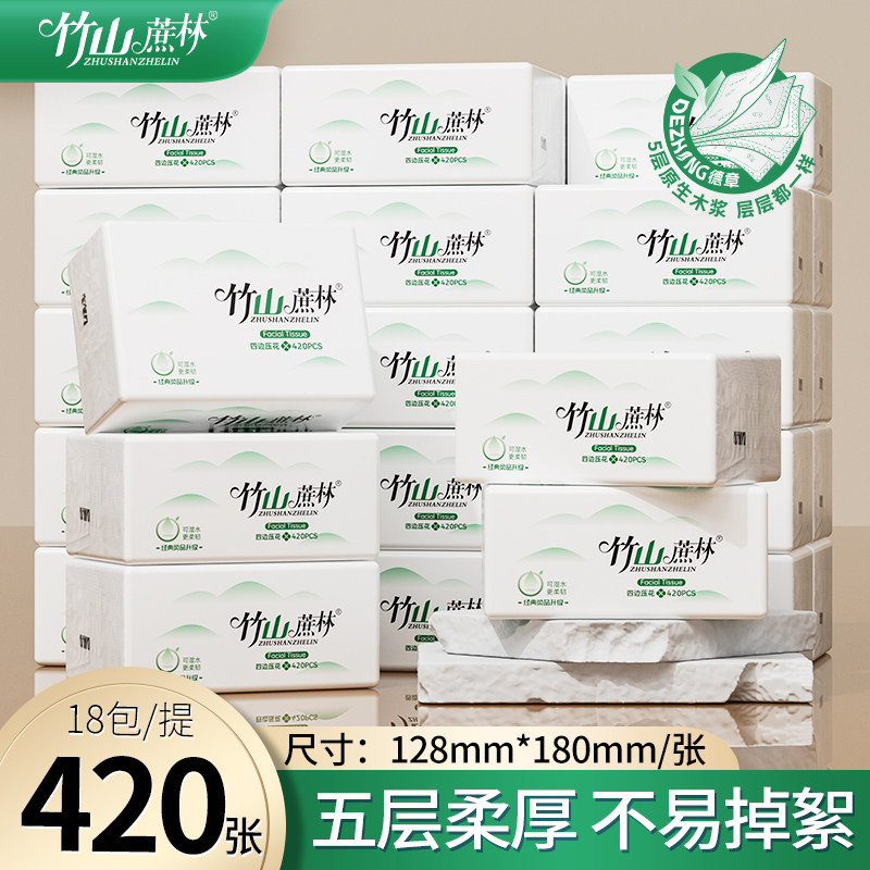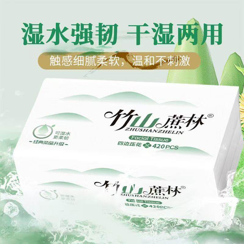竹山蔗林抽纸卫生纸巾整箱实惠装家用批发面巾纸餐巾纸8037可湿水