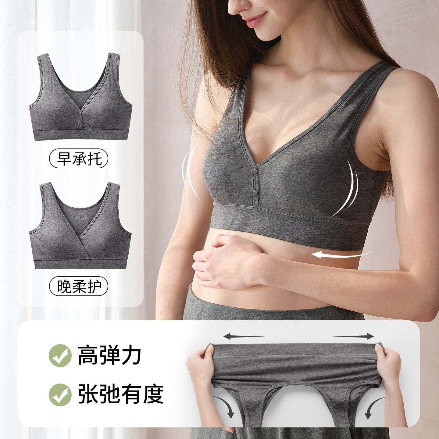 雅特茂天竹睡眠哺乳内衣孕期专用产后喂奶背心式前开扣孕妇内衣女