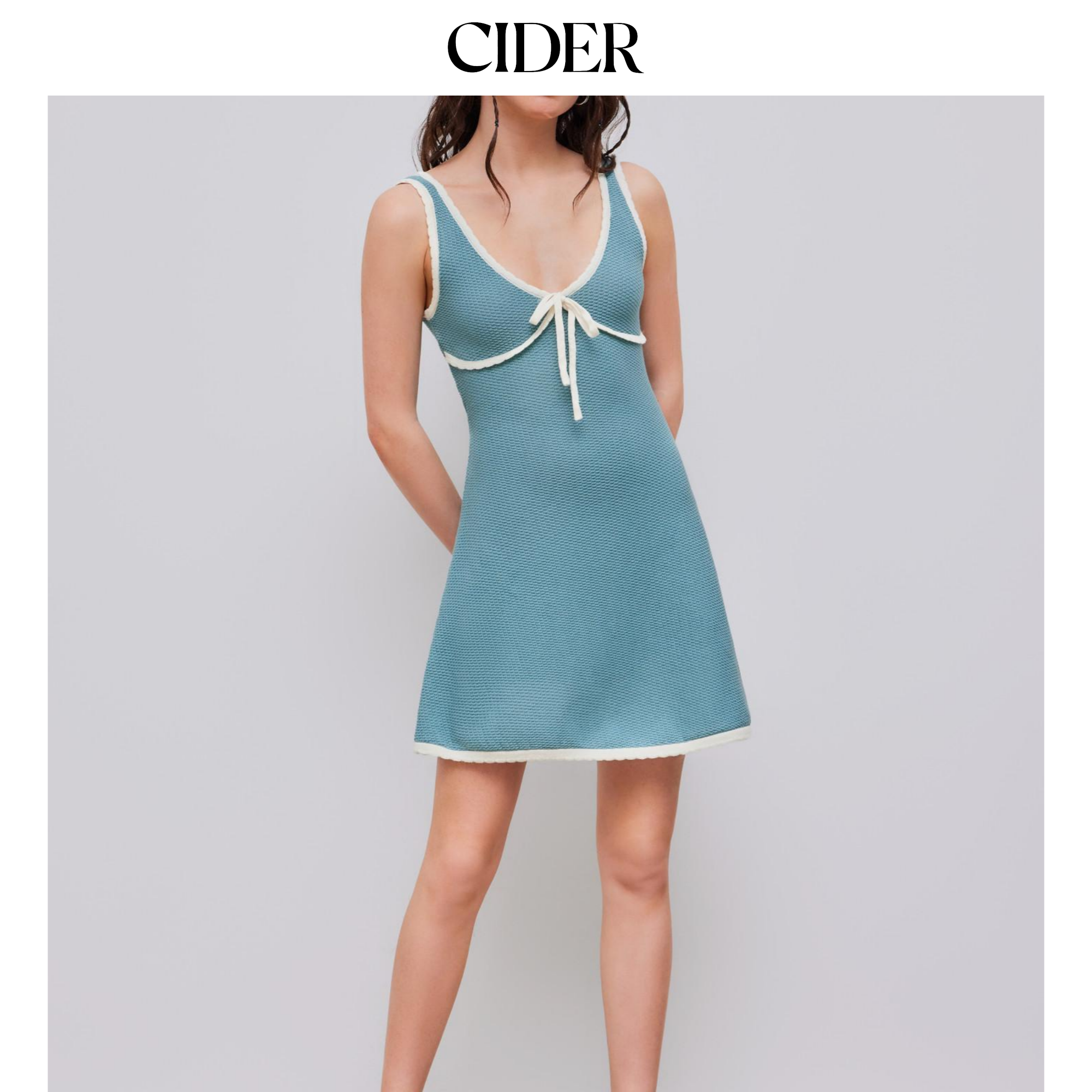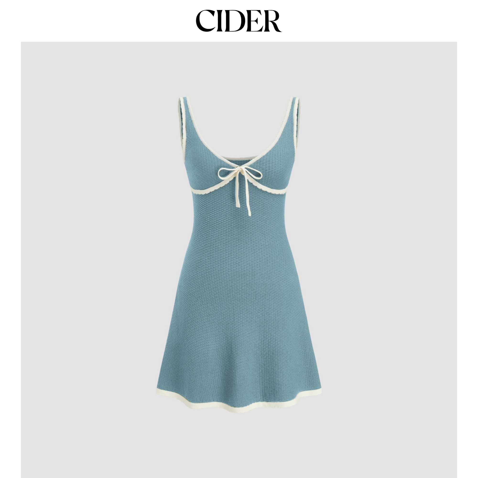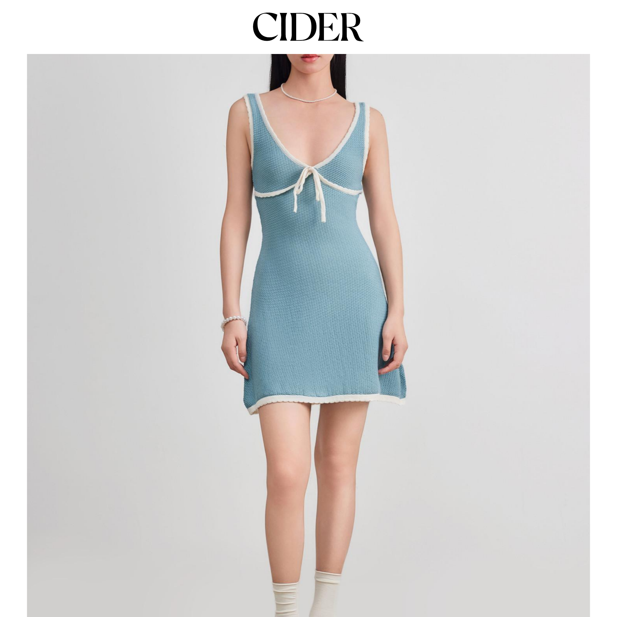 CIDER 针织色撞色镶边系带V领迷你连衣裙女装108589599