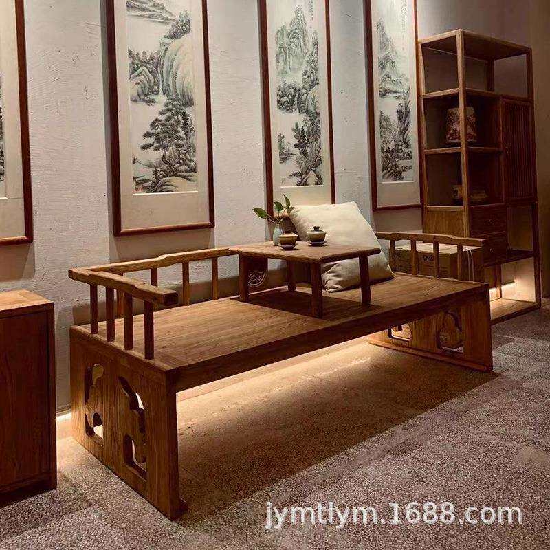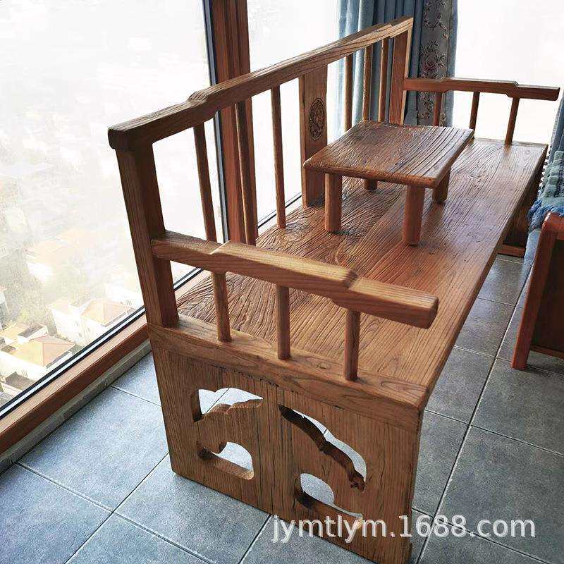老榆木罗汉床门板长凉椅实木仿古风化禅意民宿休闲躺椅榆木罗汉榻