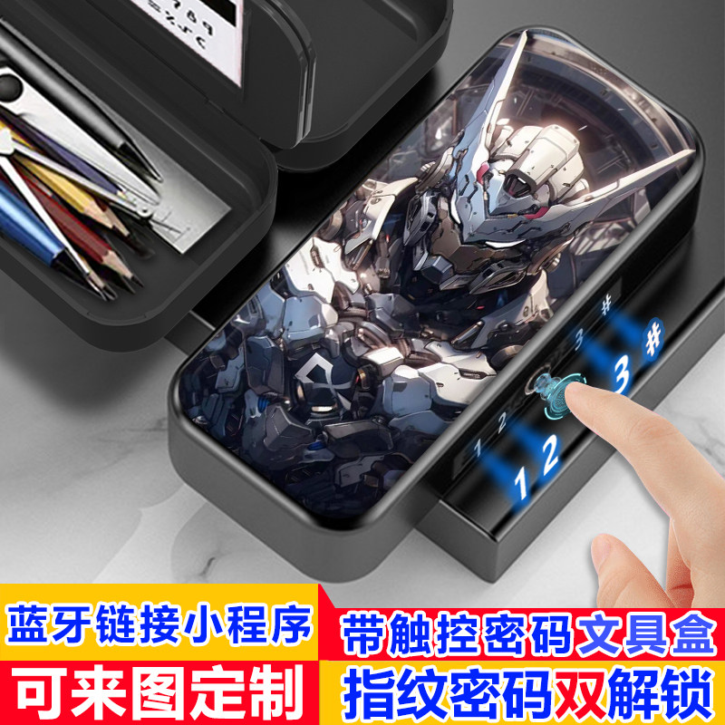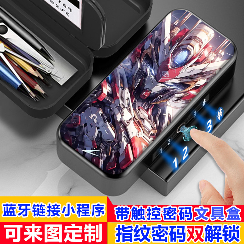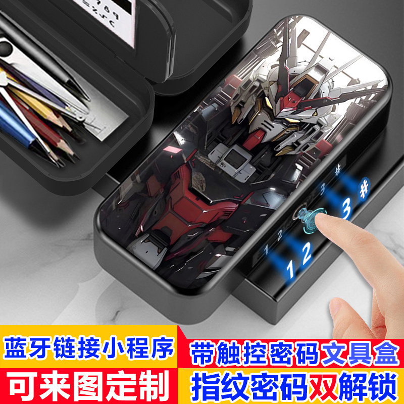 高达机甲指纹密码双解锁文具盒中小学生铅笔盒密码黑科技笔盒礼物