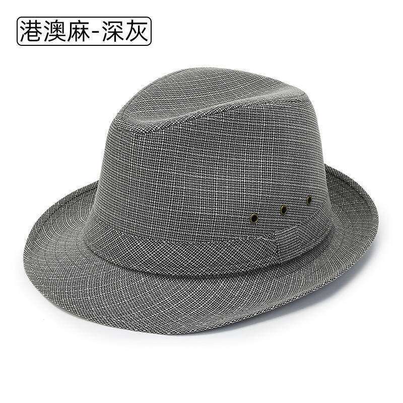 春夏季男帽中老年帽子老头帽遮阳帽男大沿麻料带气眼透气凉帽黑色