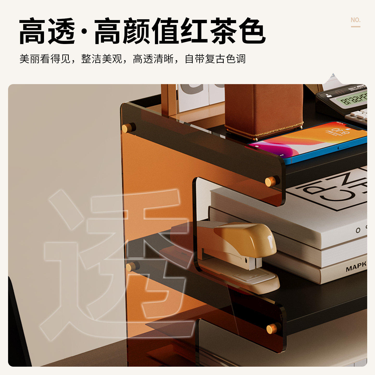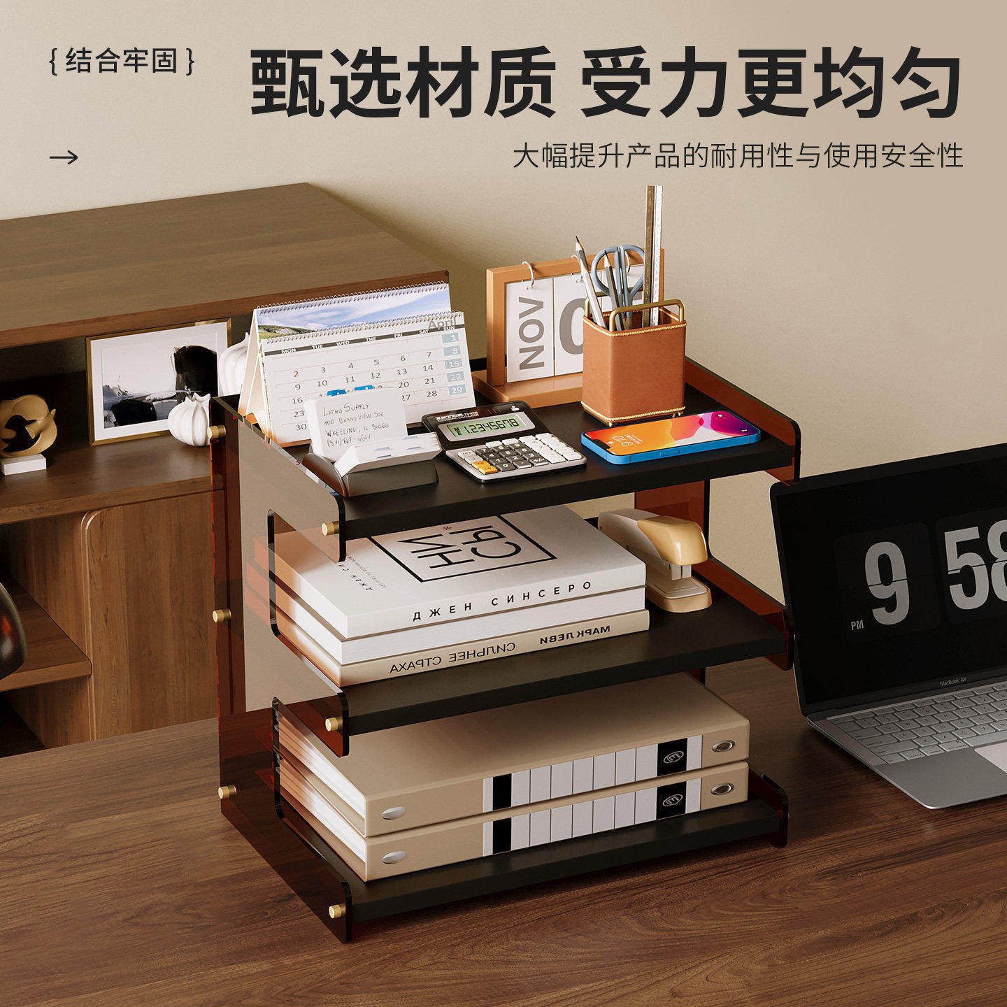 桌面多层亚克力书架宿舍资料收纳盒放置架工位分层置物架杂物整理