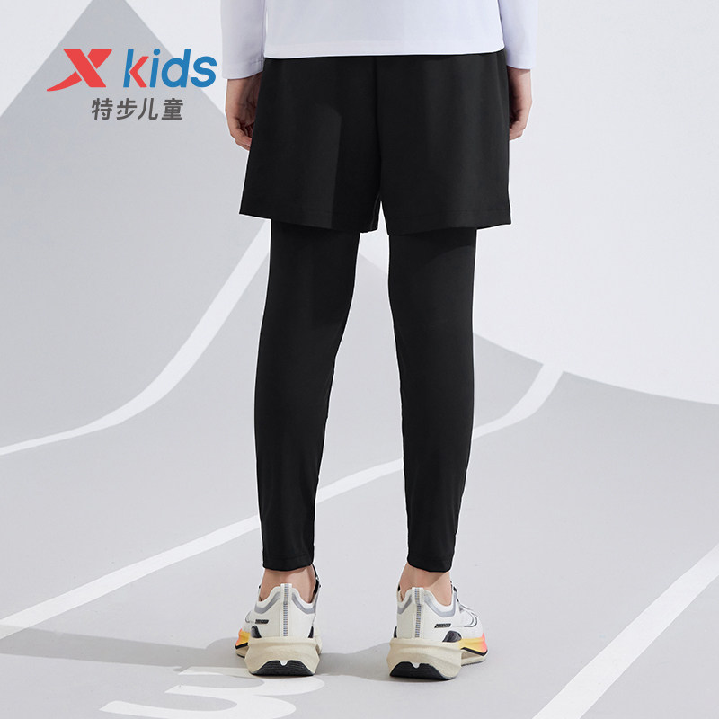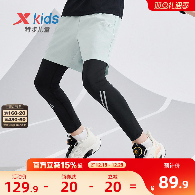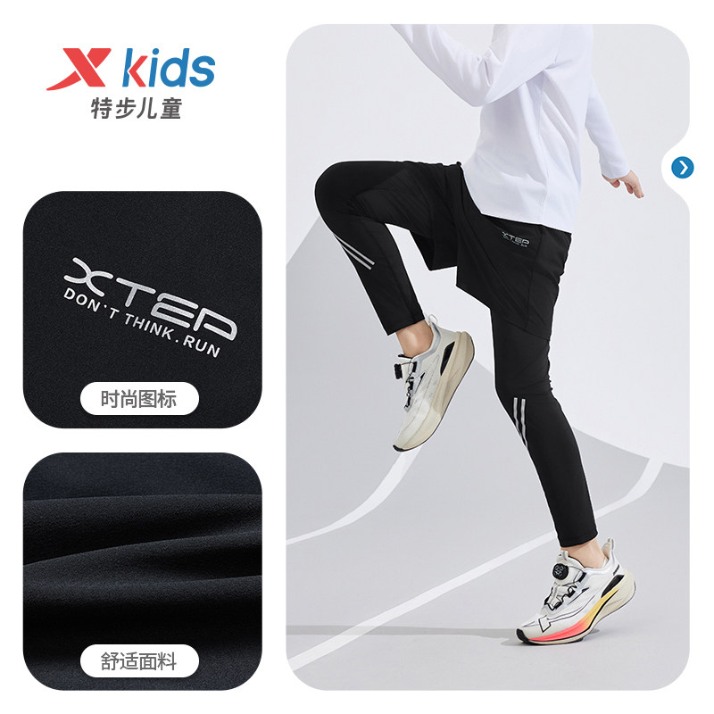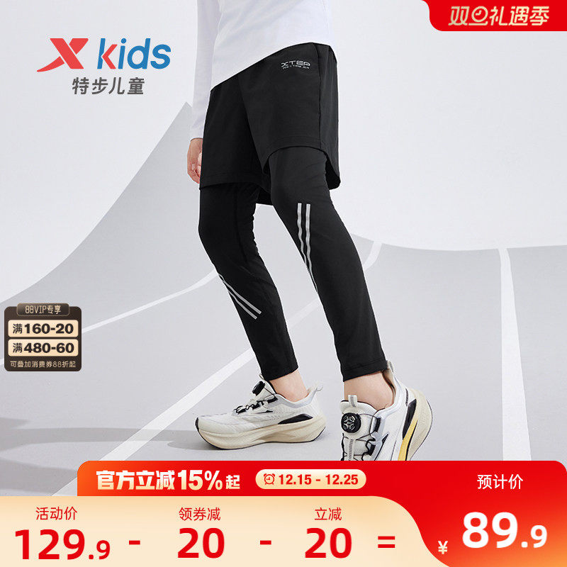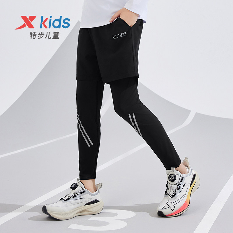 特步童装秋冬新款儿童速干裤男童假两件运动裤子大童训练长裤冬装
