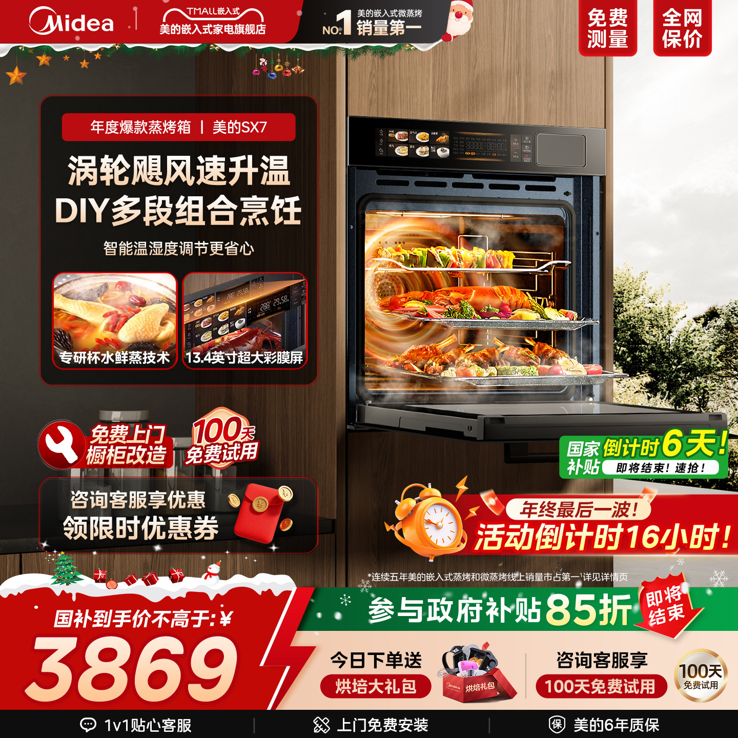美的SX7蒸烤一体机嵌入式蒸烤箱家用78L大容量智能蒸烤炸炖四合一
