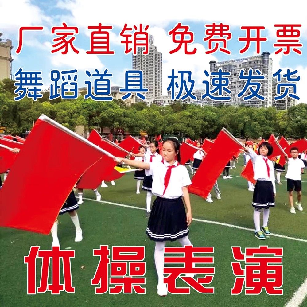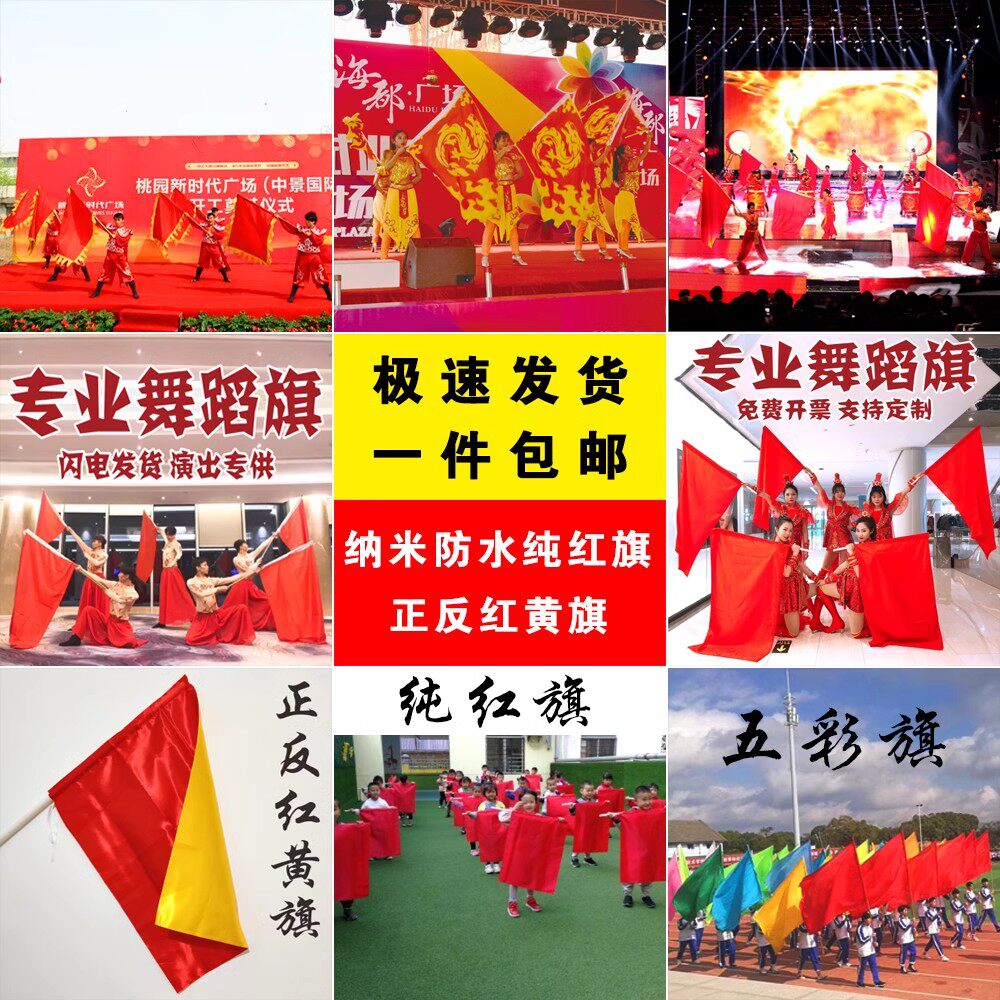 演出道具旗红旗带杆舞蹈比赛体操运动会方队表演红黄双面旗纯红旗
