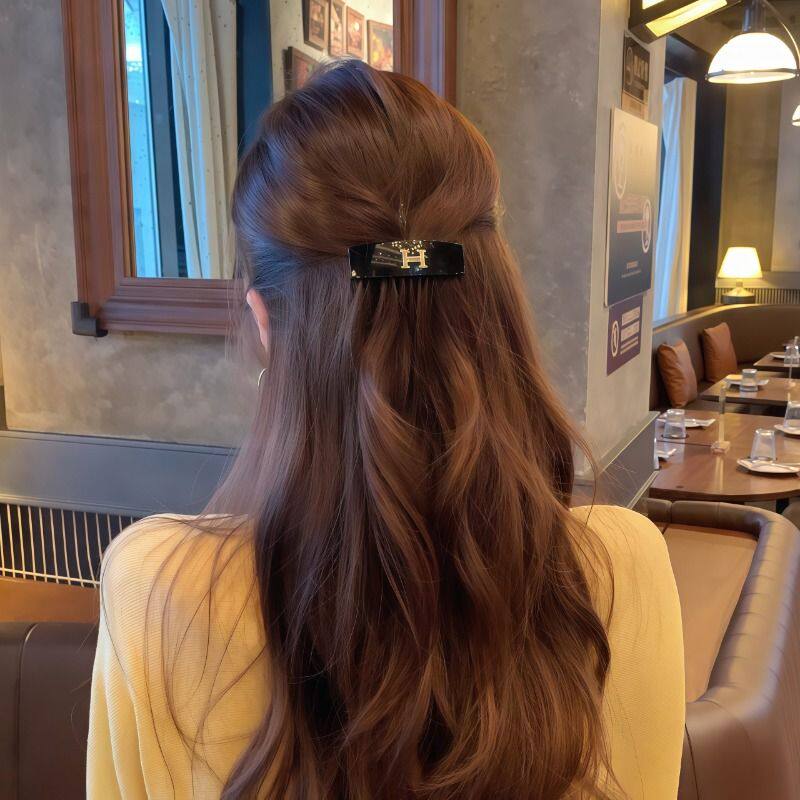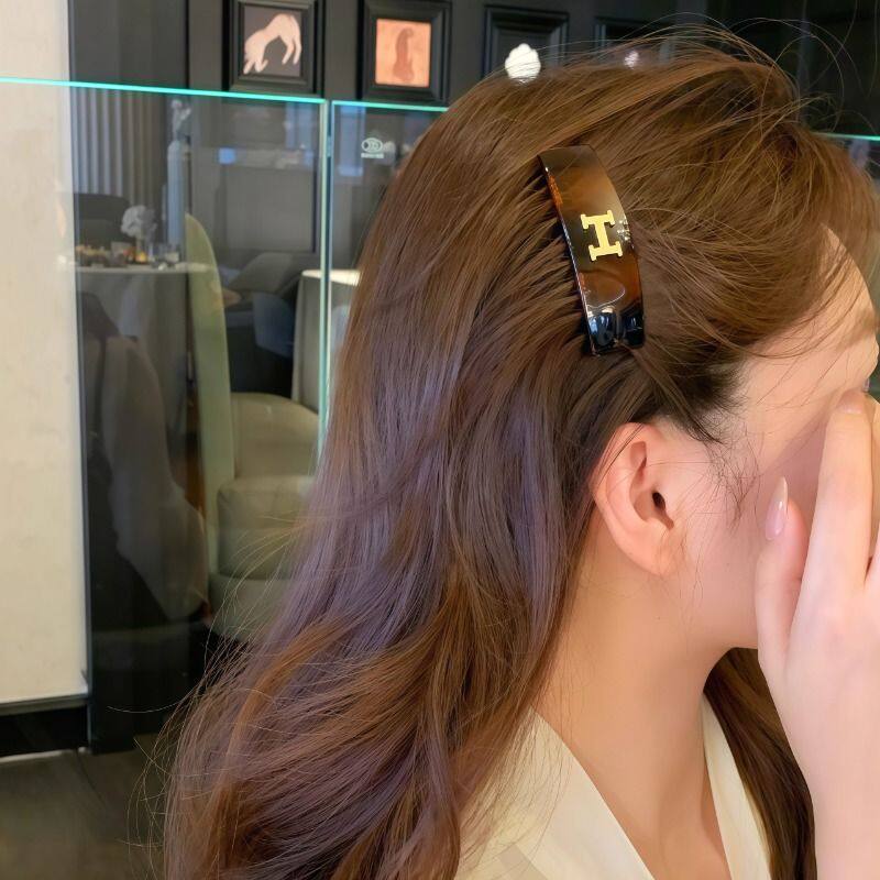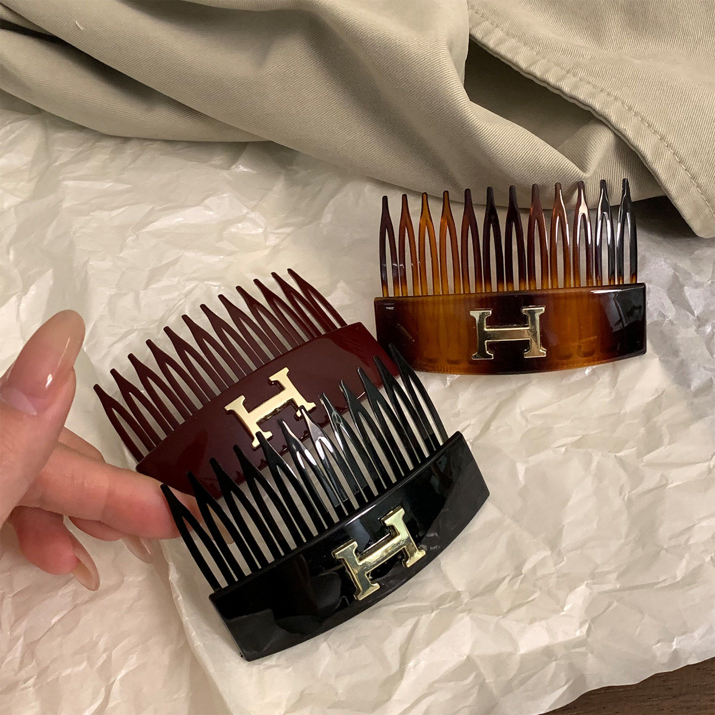 韩系轻奢气质金标H字母发梳女侧边碎发刘海夹倒插梳发夹头饰发卡