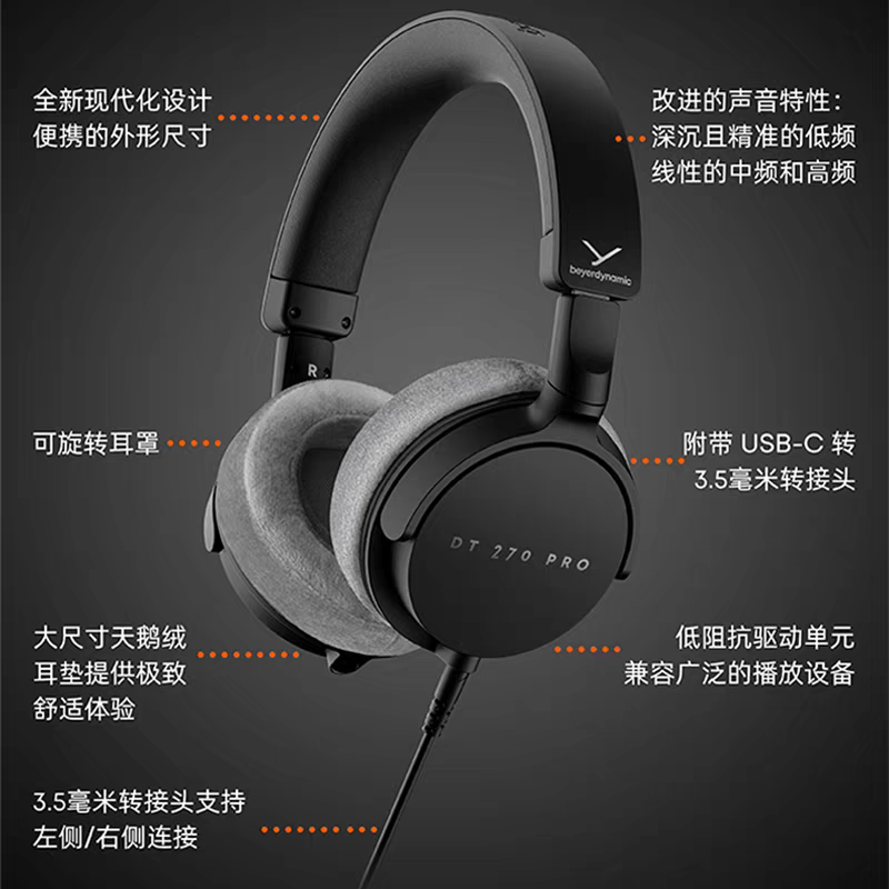 beyerdynamic/拜雅 DT270Pro便携录音监听HiFi头戴封闭式混音耳机