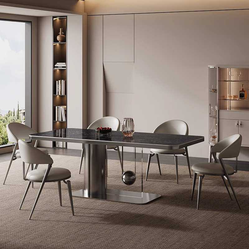 轻奢岩板餐桌奢石意式家用高级感设计师微晶石小户型现代简约饭桌
