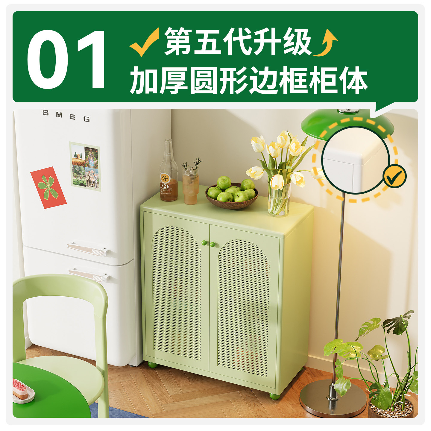 多功能金属餐边柜客厅咖啡柜靠墙一体储物柜小户型家用铁艺置物架