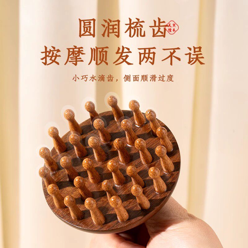 优选檀木圆盘按摩梳头皮经络按摩爪疏通神器女家用便携按头部面部