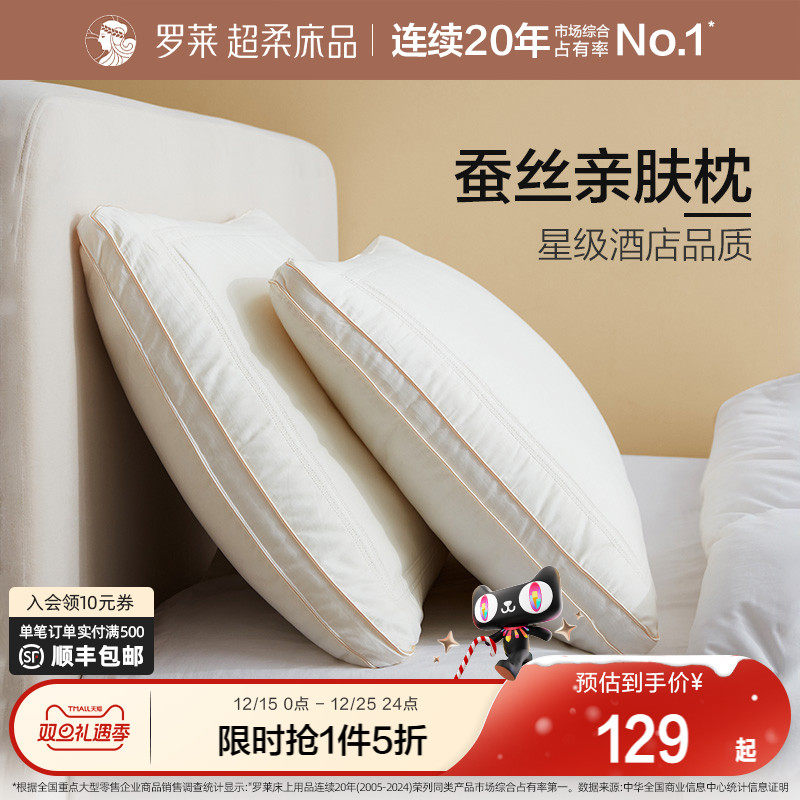 罗莱罗莱家纺床上用品高支全棉枕头枕芯学生宿用舍蚕丝亲肤枕单只