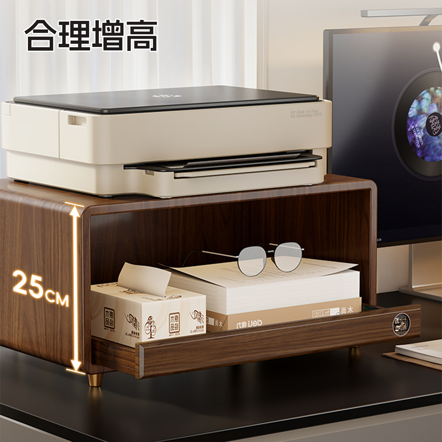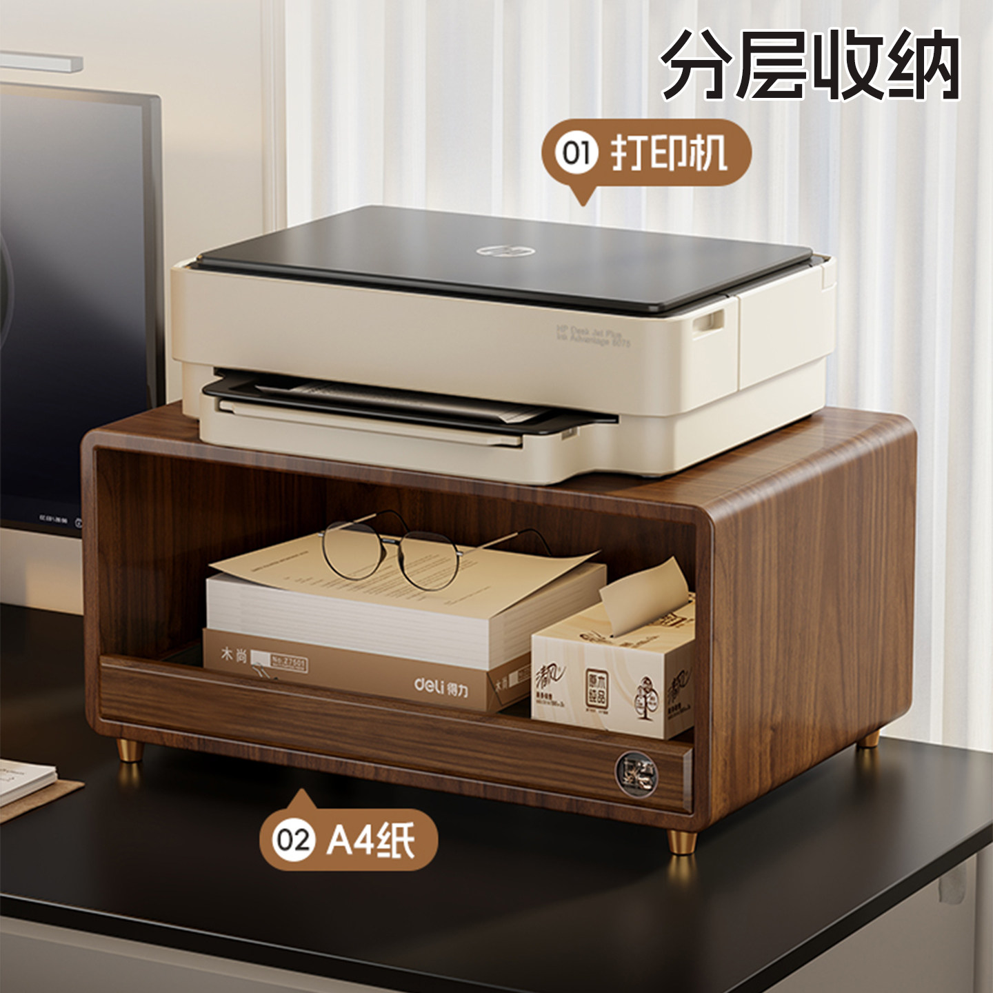 实木打印机置物架咖啡机水杯办公室桌面书房双层复印机收纳架台面